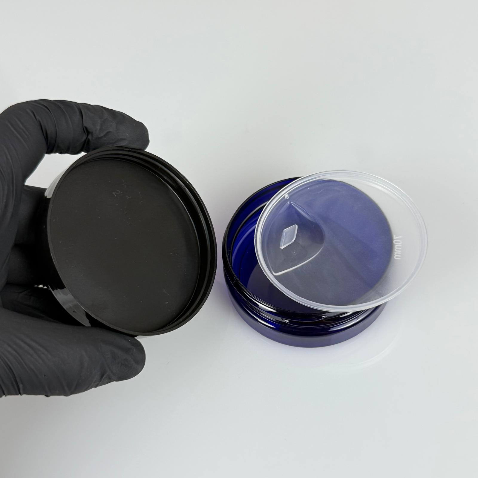 50 ML SERT PET KAVANOZ + SİYAH PLASTİK KAPAK + İÇ TIPA - 50 CC KALIN MAVİ PLASTİK KAVANOZ SİYAH PLASTİK KAPAKLI İÇ TIPALI TAKIM - KREM KAVANOZLARI - 1100 adet