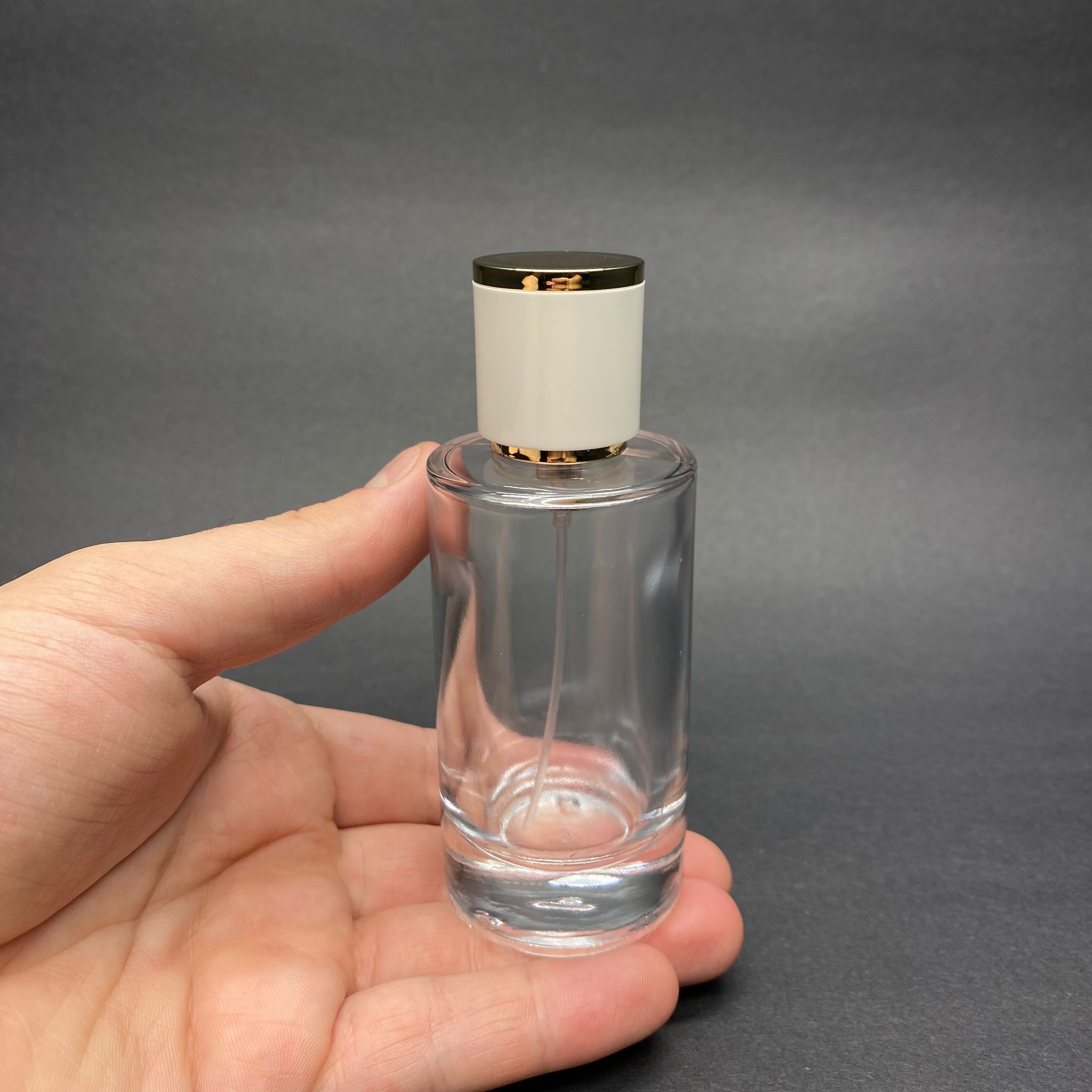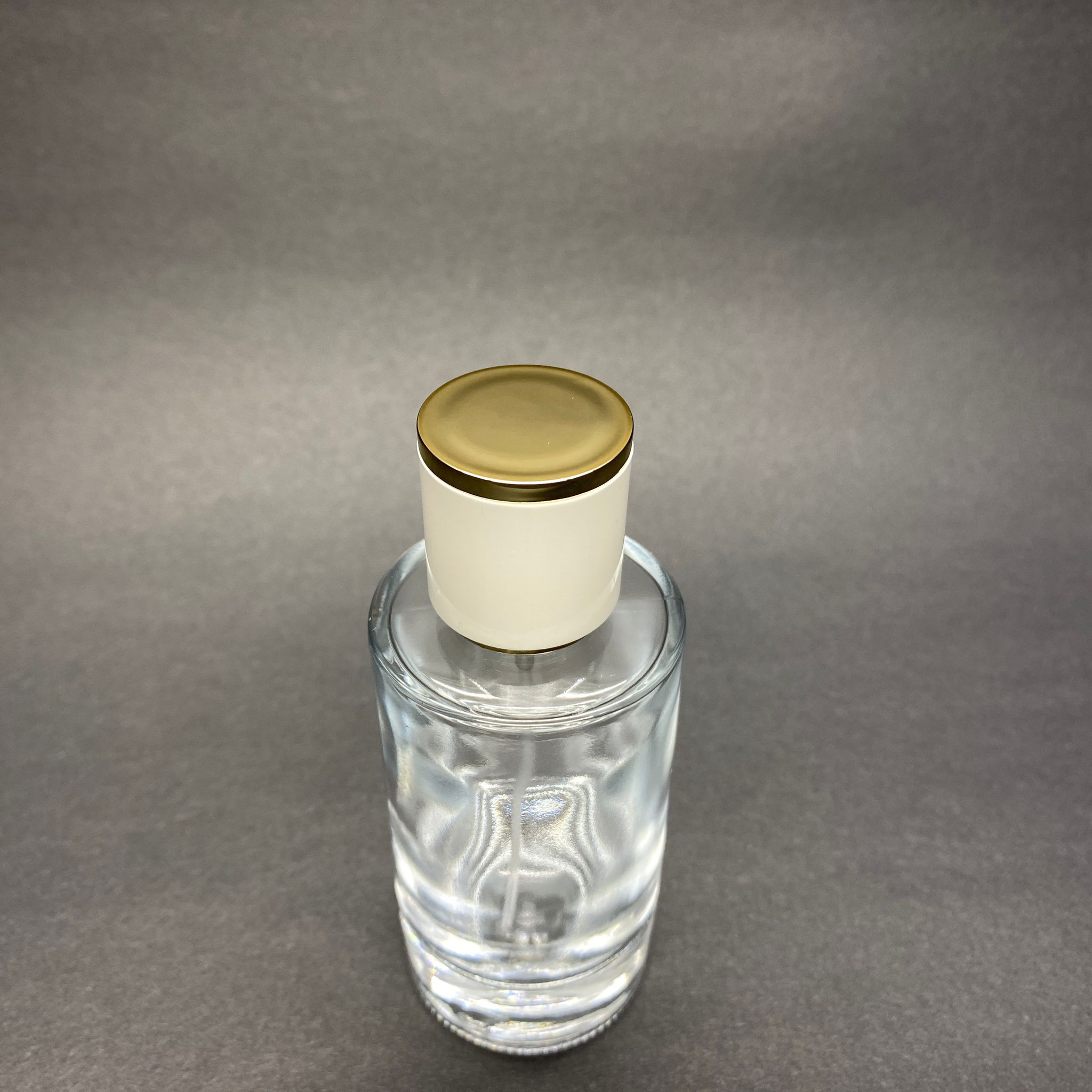 50 ML SİLİNDİR MODEL MARS PARFÜM ŞİŞESİ - GOLD METAL SPREYLİ + GOLD BEYAZ KAPAKLI (AĞIZ 15 MM GEÇME KOLAY KAPAMA) - 77 adet