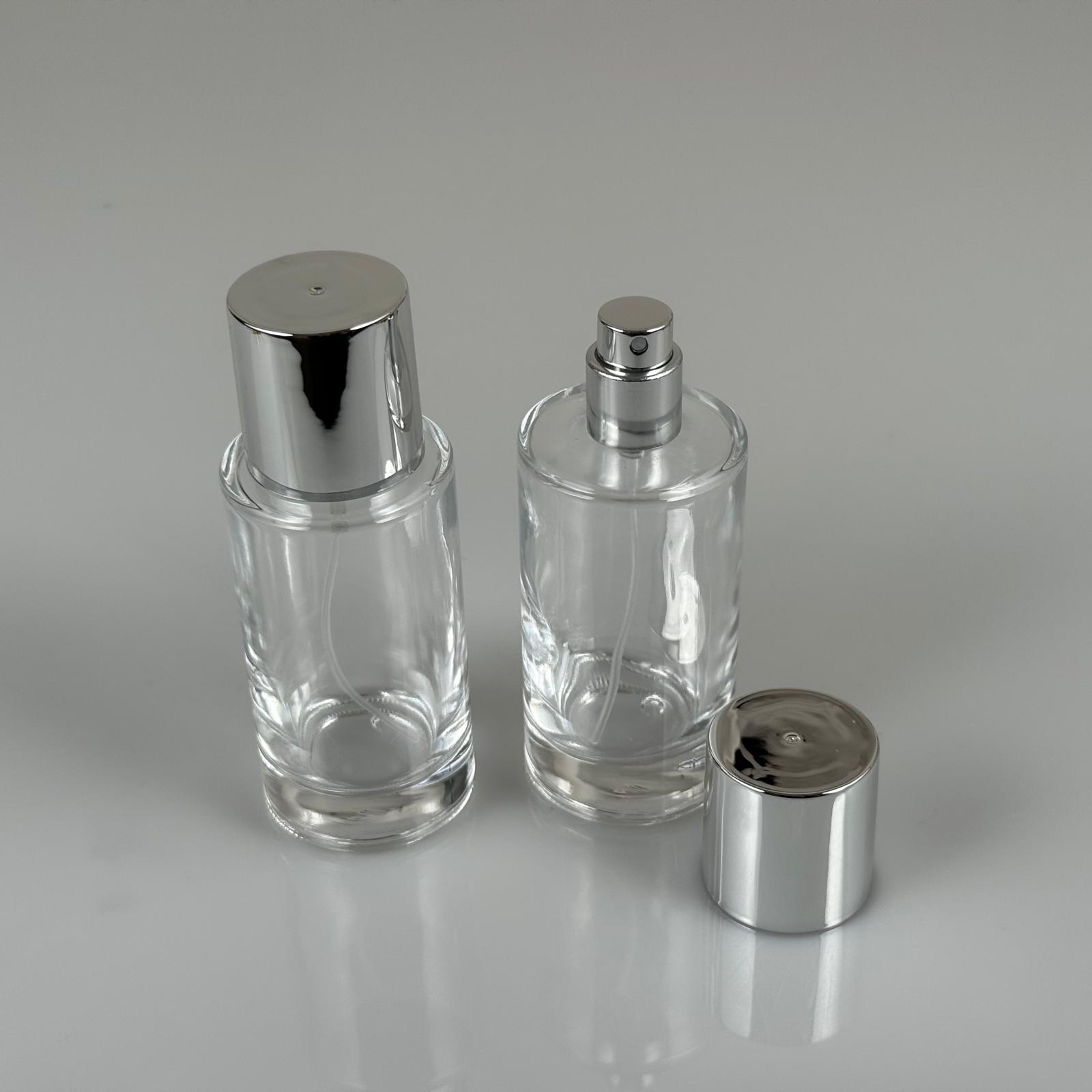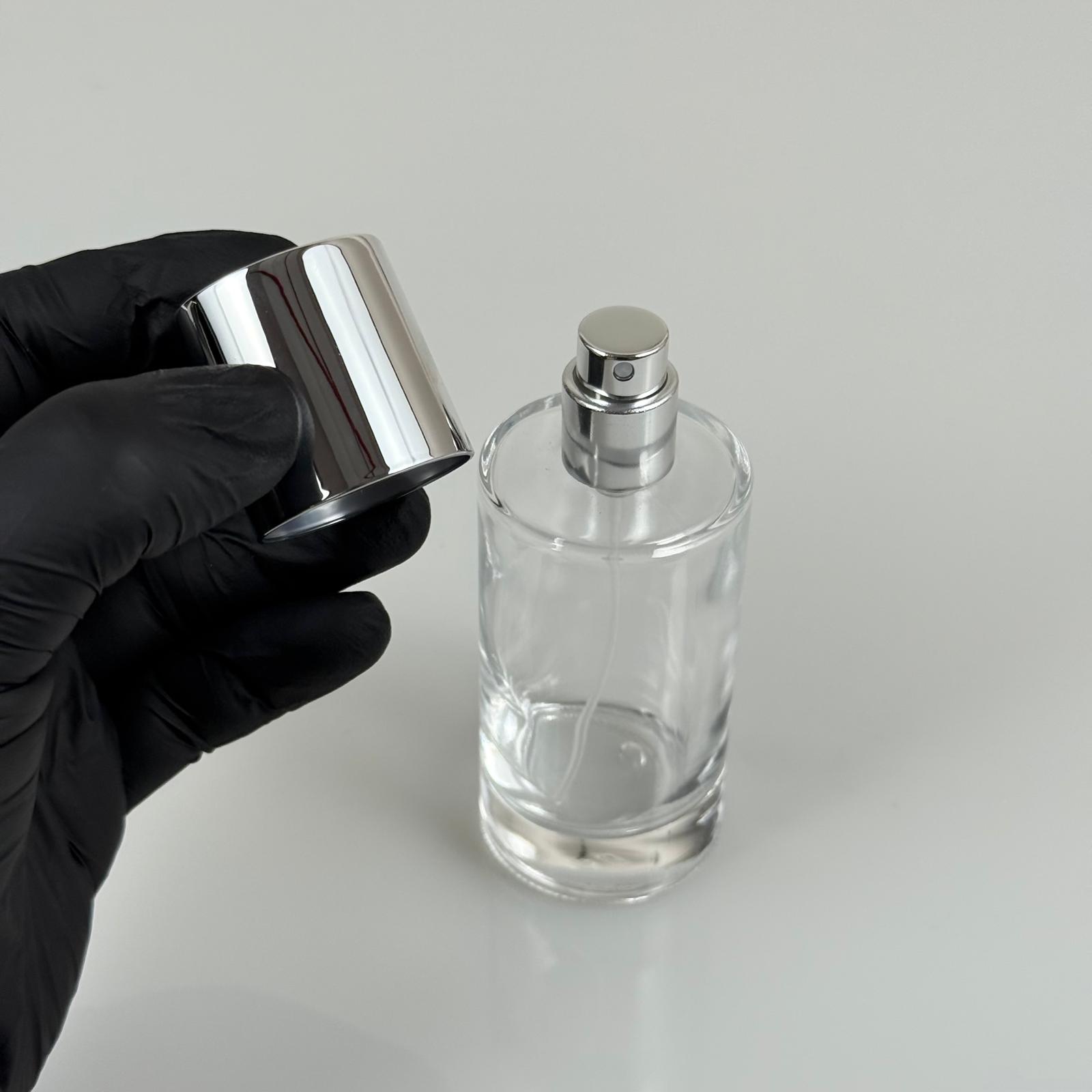 50 ML SİLİNDİR MODEL MARS PARFÜM ŞİŞESİ - GÜMÜŞ METAL SPREYLİ + GÜMÜŞ GENİŞ KAPAKLI (AĞIZ 15 MM GEÇME KOLAY KAPAMA) - 77 adet