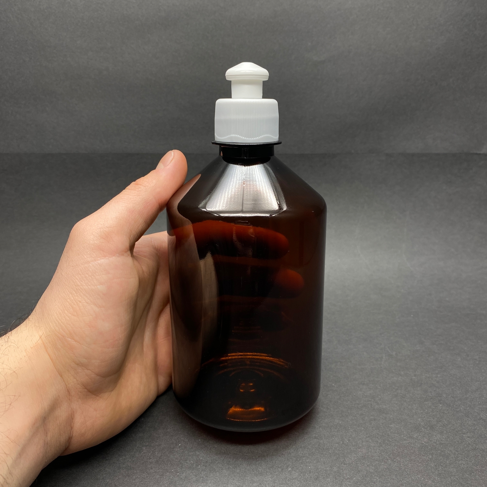 500 CC AMBER PLASTİK ŞİŞE - BEYAZ AKITICILI PUSH-PULL KAPAKLI - 500 ML KAHVERENGİ BOŞ PLASTİK ŞİŞE - 380 adet