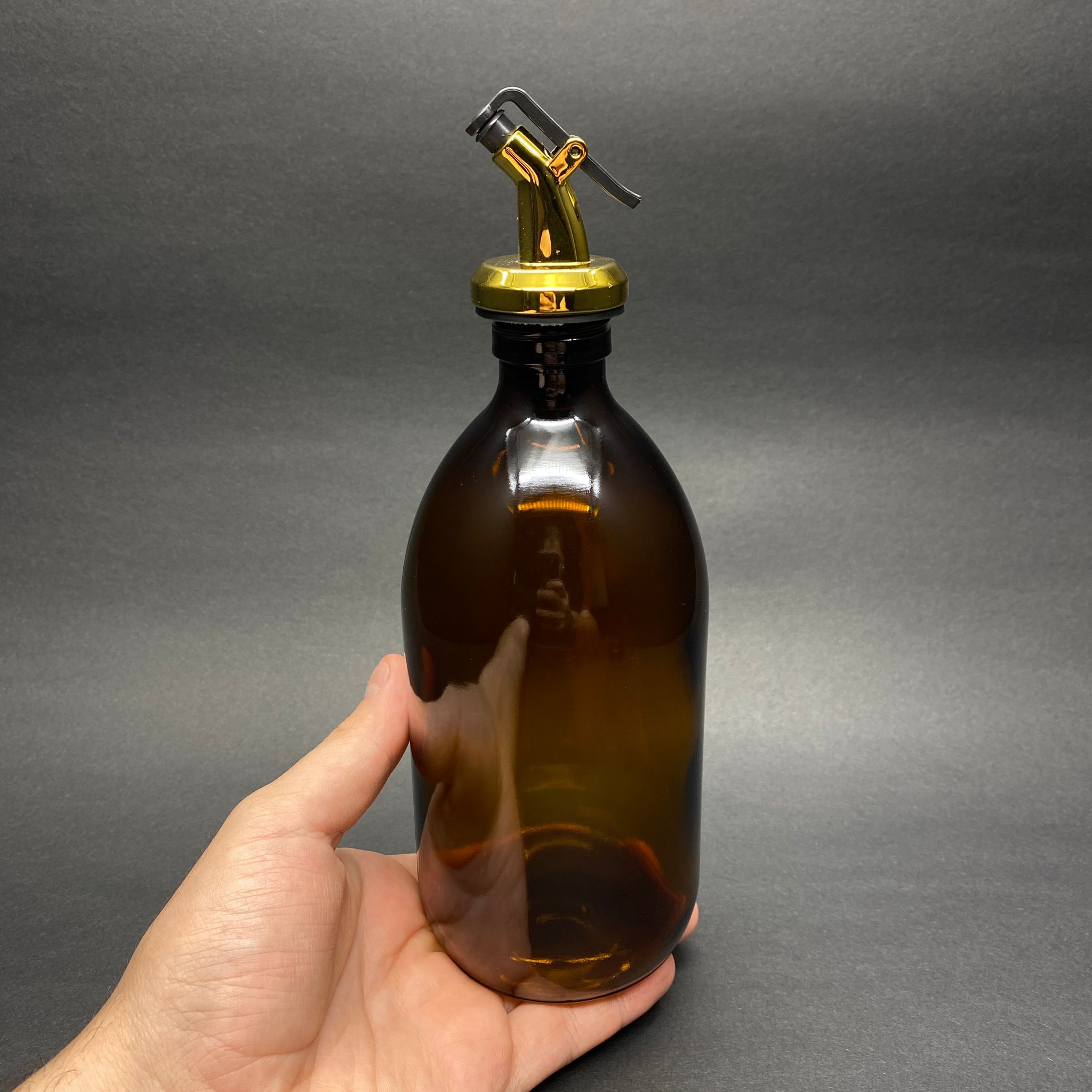 500 CC AMBER TOMBUL ÖZEL SERİ CAM ŞİŞE - GOLD KAPAKLI YAĞDANLIK TIPALI - 500 ML CAM ECZA ŞİŞESİ - KAHVERENGİ - 50 adet