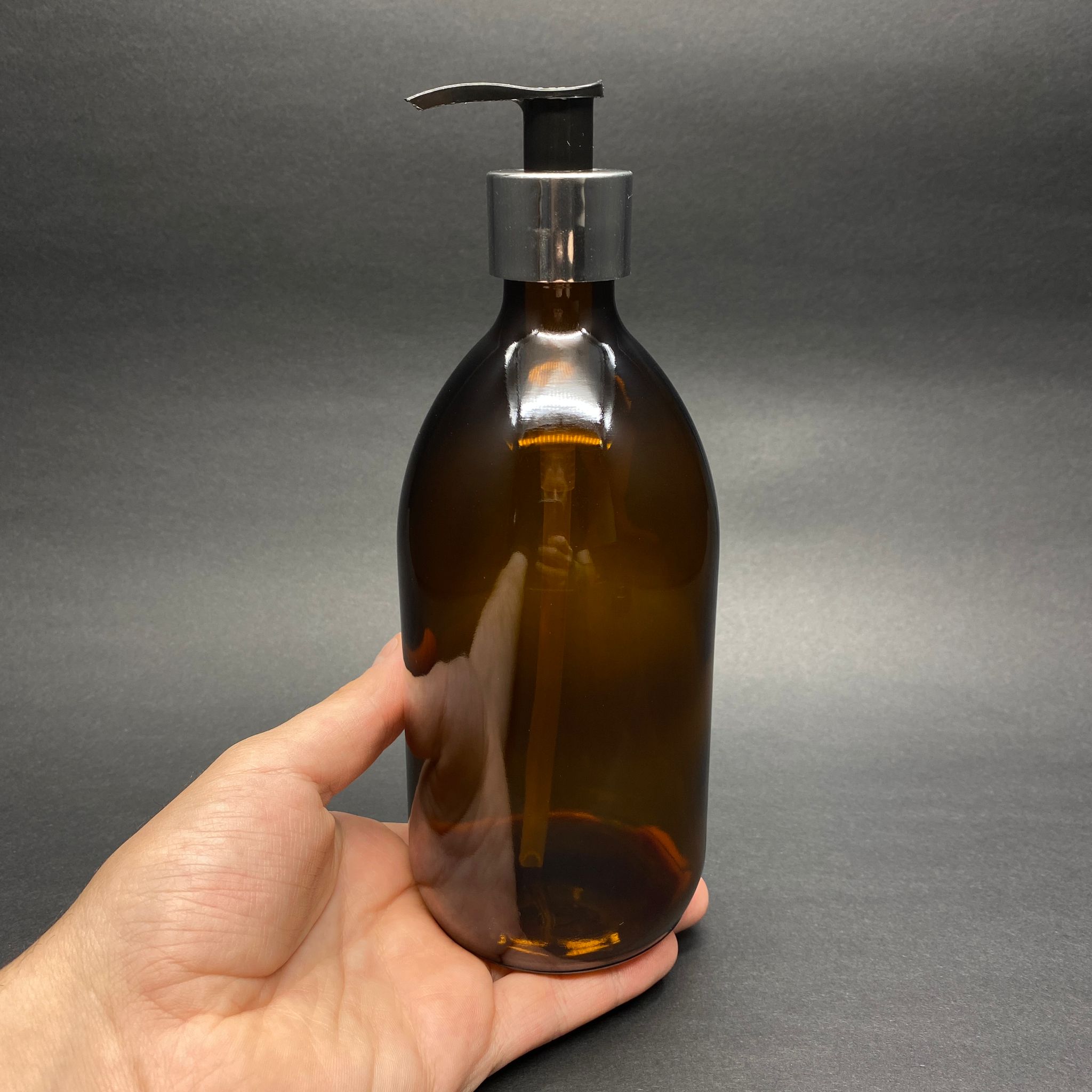 500 CC AMBER TOMBUL ÖZEL SERİ CAM ŞİŞE - GÜMÜŞ METAL KAPLAMALI POMPALI - 500 ML CAM ECZA ŞİŞESİ - KAHVERENGİ - 50 adet