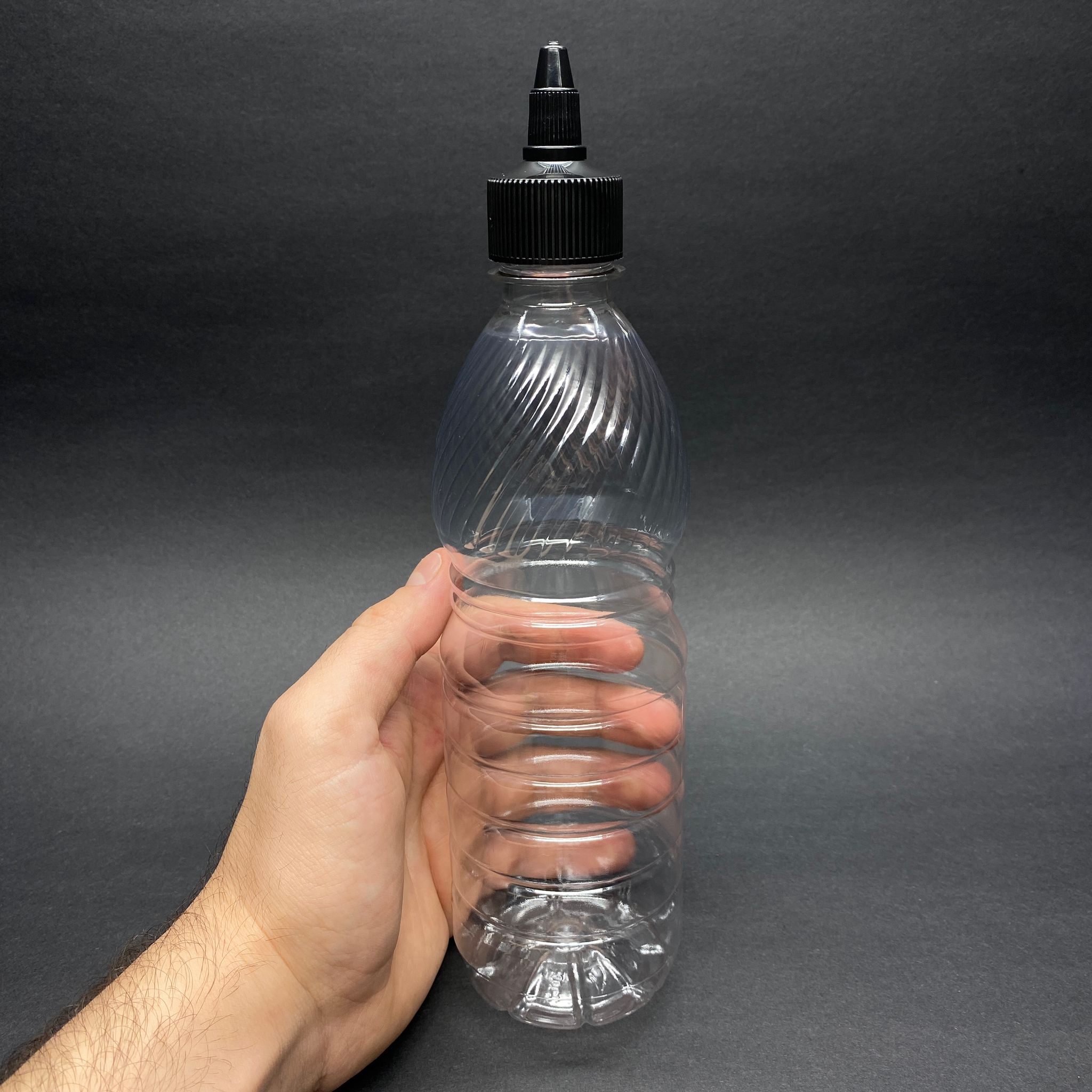 500 CC SİVRİ TWİST ASANSÖR KAPAKLI ŞEFFAF PET ŞİŞE - 0,5 LİTRE AKITICI SİYAH KAPAKLI PET ŞİŞE - 153 adet