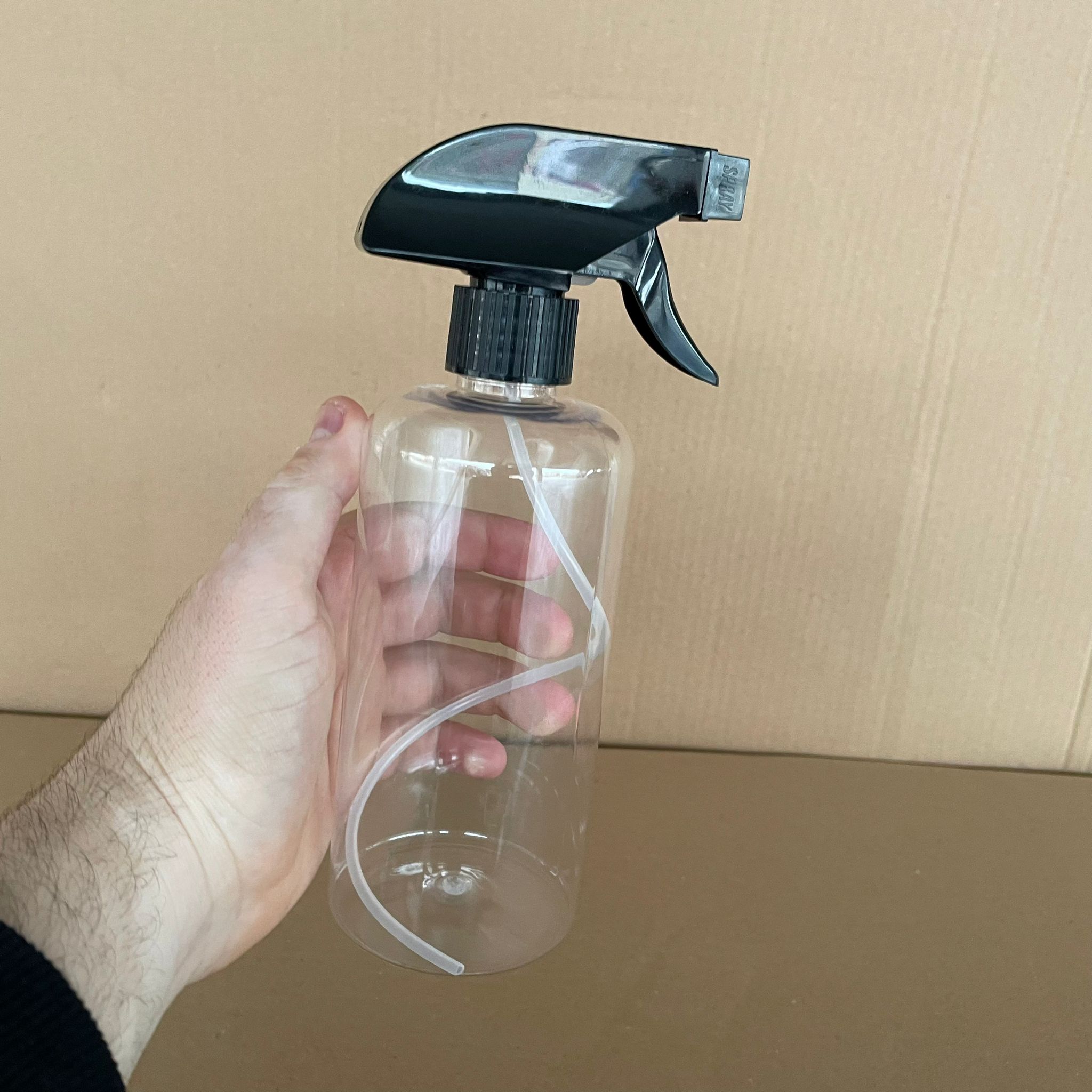 500 CC UZUN SİLİNDİR PET ŞİŞE KALIN (26 GR) - SİYAH TETİK TRİGER SPREYLİ - 28 AĞIZ - 500 ML PET ŞİŞE - 306 adet