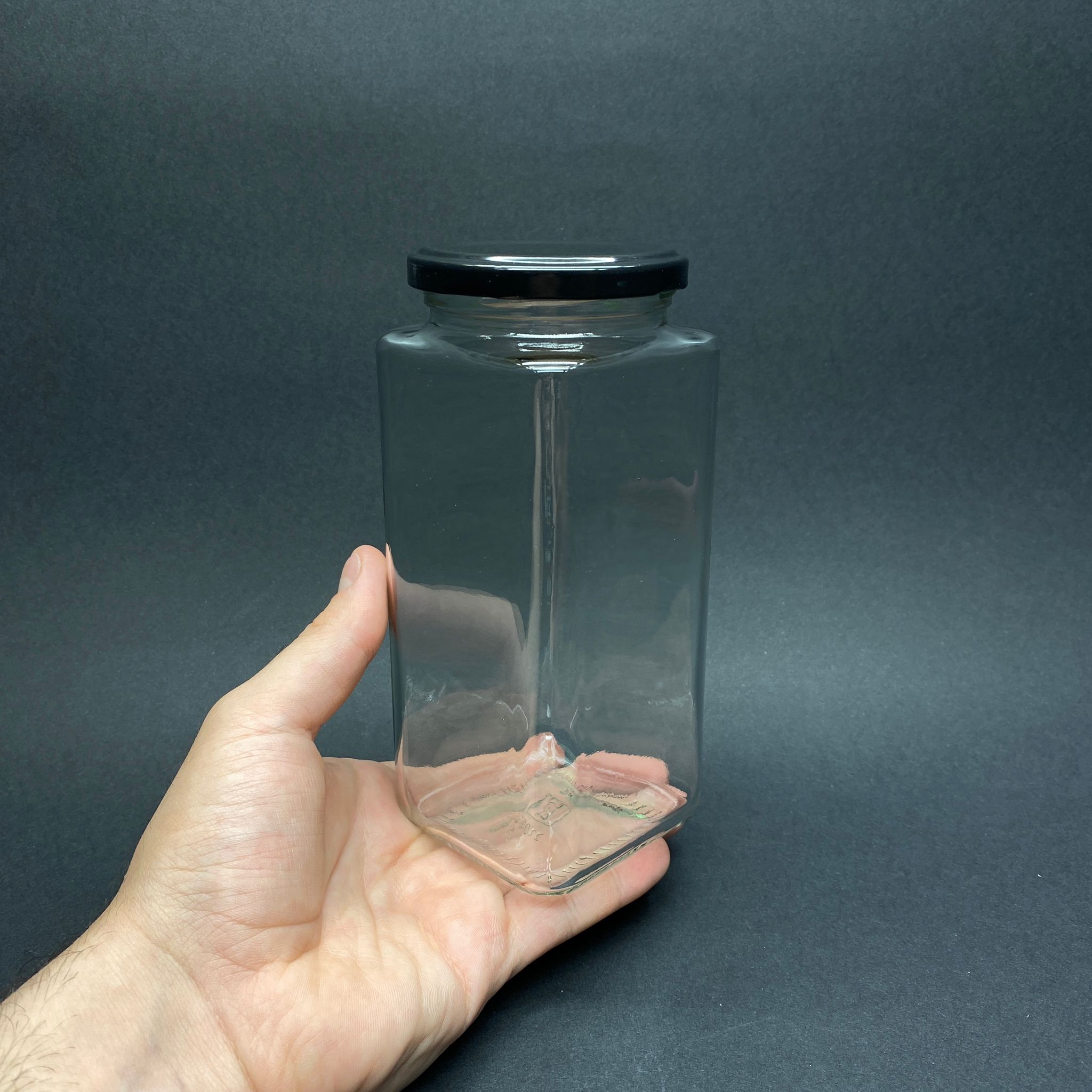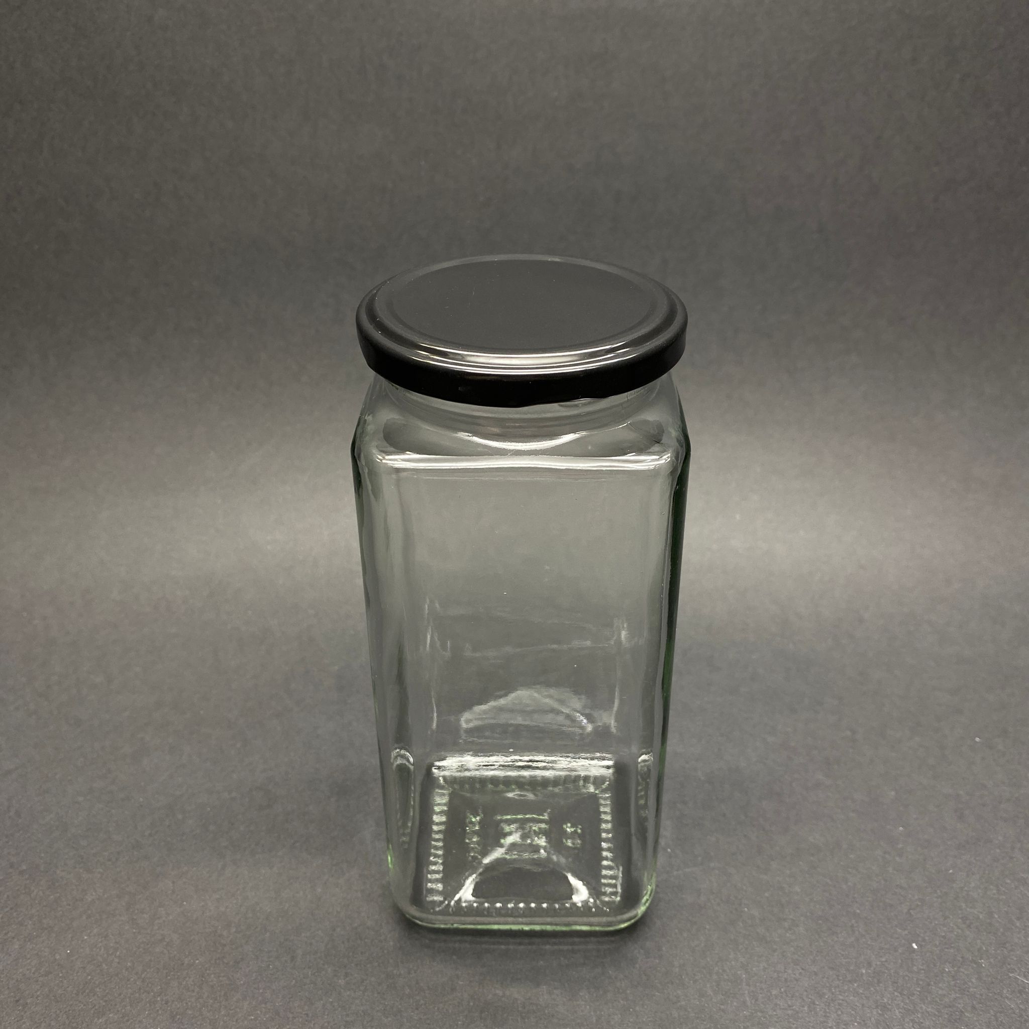 550 CC CAM KARE KAVANOZ SİYAH METAL KAPAKLI - 550 ML KÖŞELİ KAVANOZ - 48 adet