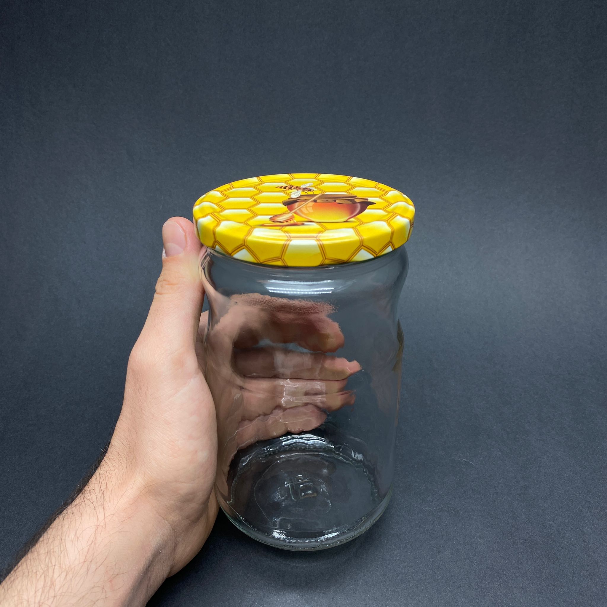 660 CC BOĞUMLU CAM KAVANOZ - PETEK/BAL DESENLİ METAL KAPAKLI - 660 ML CAM KAVANOZ - KONSERVE KAVANOZU - 30 adet