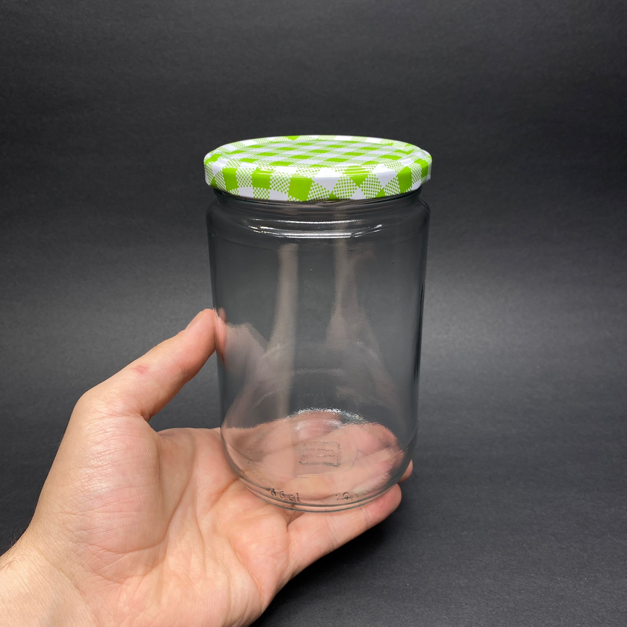 660 CC CAM KAVANOZ - YEŞİL EKOSE METAL KAPAKLI - 660 ML CAM BAL KAVANOZLARI - 60 adet