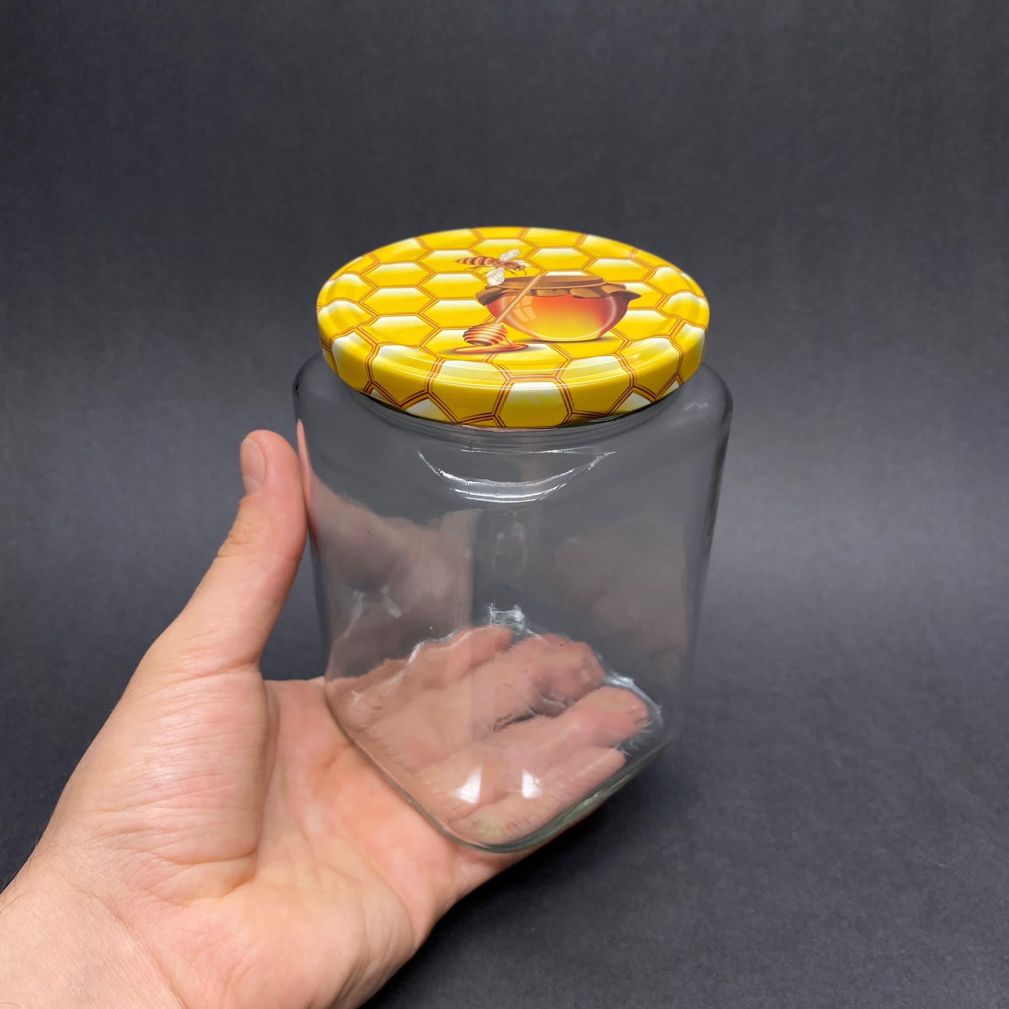 720 CC CAM KARE KAVANOZ - PETEK/BAL DESENLİ METAL KAPAKLI - 720 ML KÖŞELİ CAM KAVANOZ - 28 adet