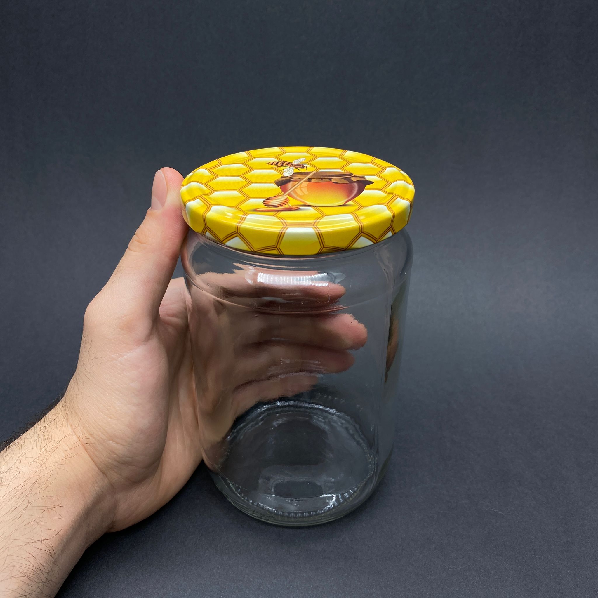 720 CC CAM KAVANOZ - PETEK/BAL DESENLİ METAL KAPAKLI - 720 ML CAM KAVANOZ - 30 adet