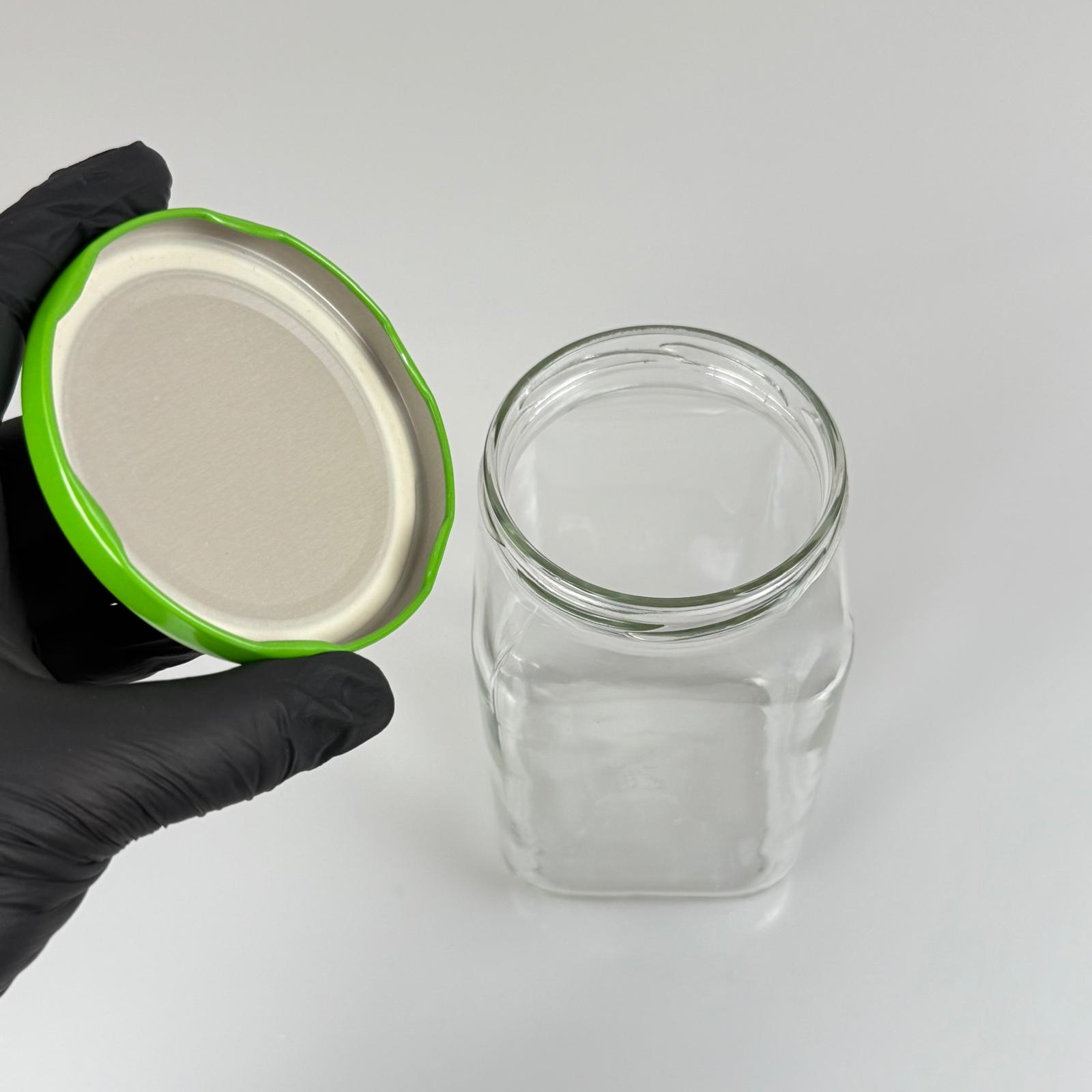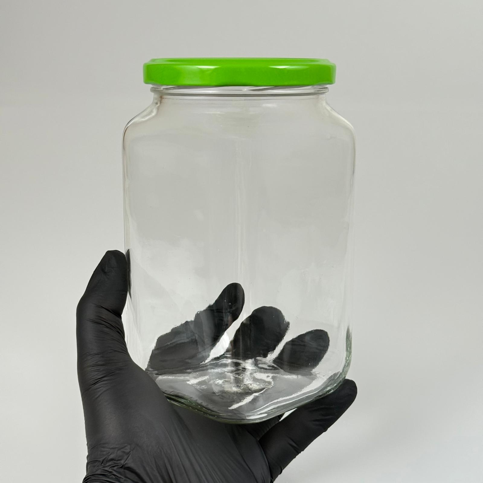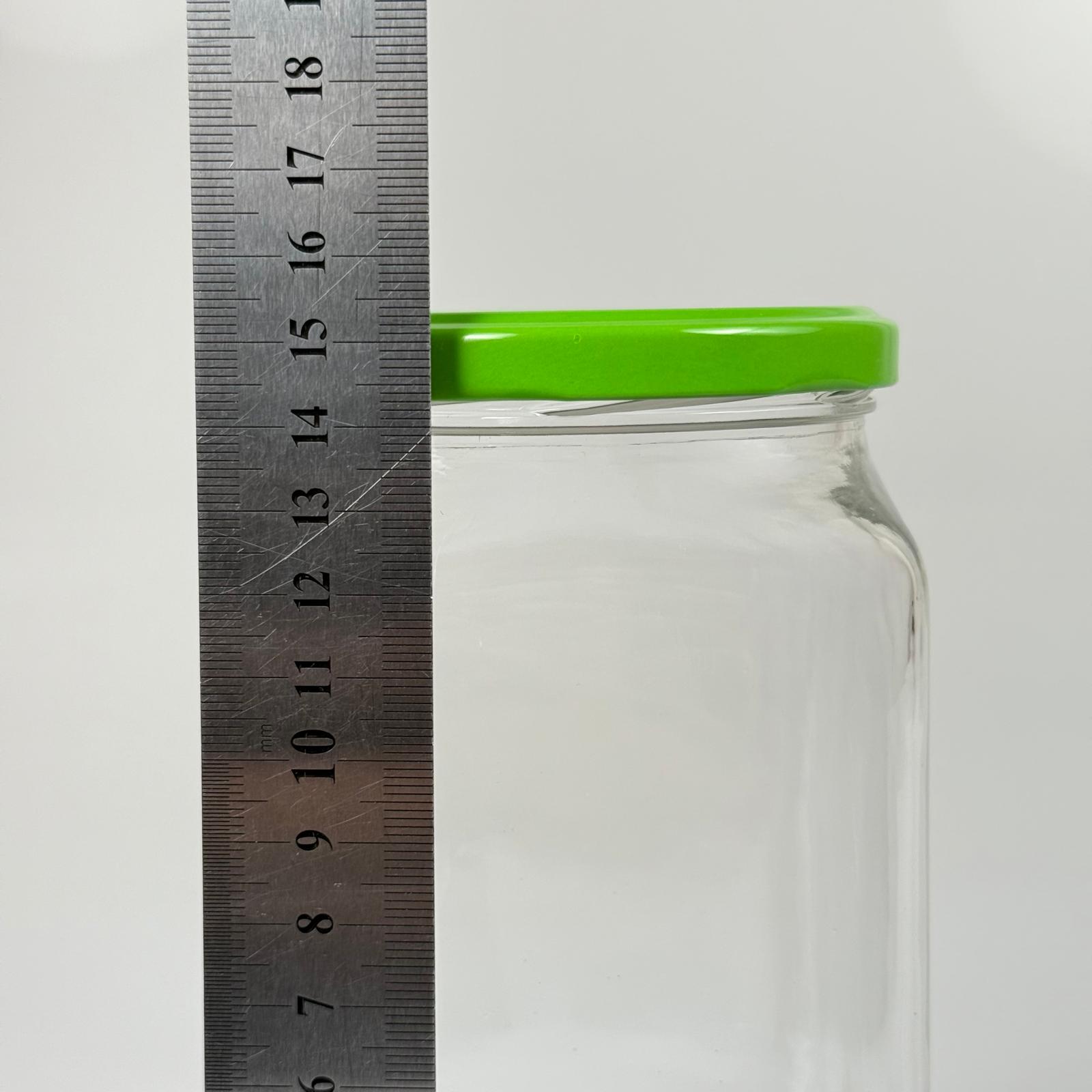 850 CC KARE CAM KAVANOZ - AÇIK YEŞİL METAL KAPAKLI - 850 ML KÖŞELİ CAM KAVANOZ - 24 adet