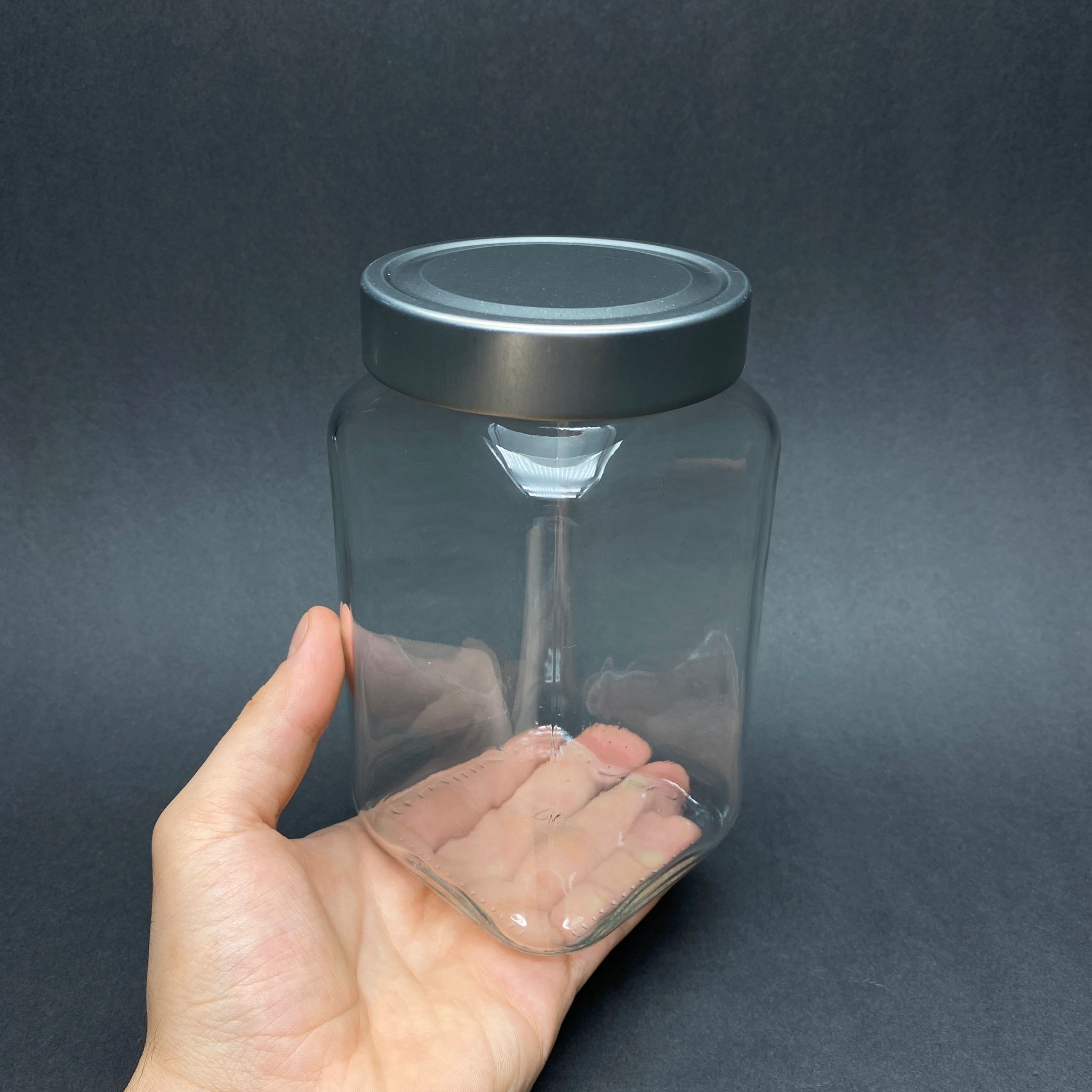 850 CC KARE CAM KAVANOZ - DERİN GÜMÜŞ LÜKS METAL KAPAKLI - 850 ML KÖŞELİ CAM KAVANOZ - 24 adet