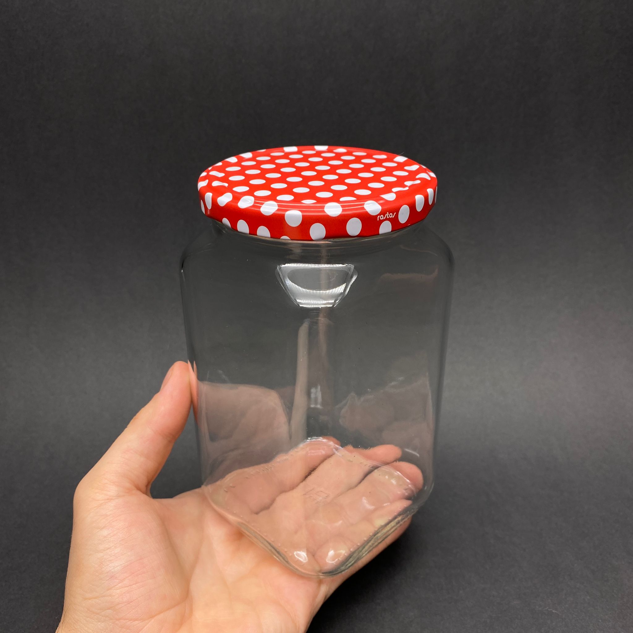 850 CC KARE CAM KAVANOZ - PUANTİYELİ DESENLİ METAL KAPAKLI - 850 ML KÖŞELİ CAM KAVANOZ - 24 adet