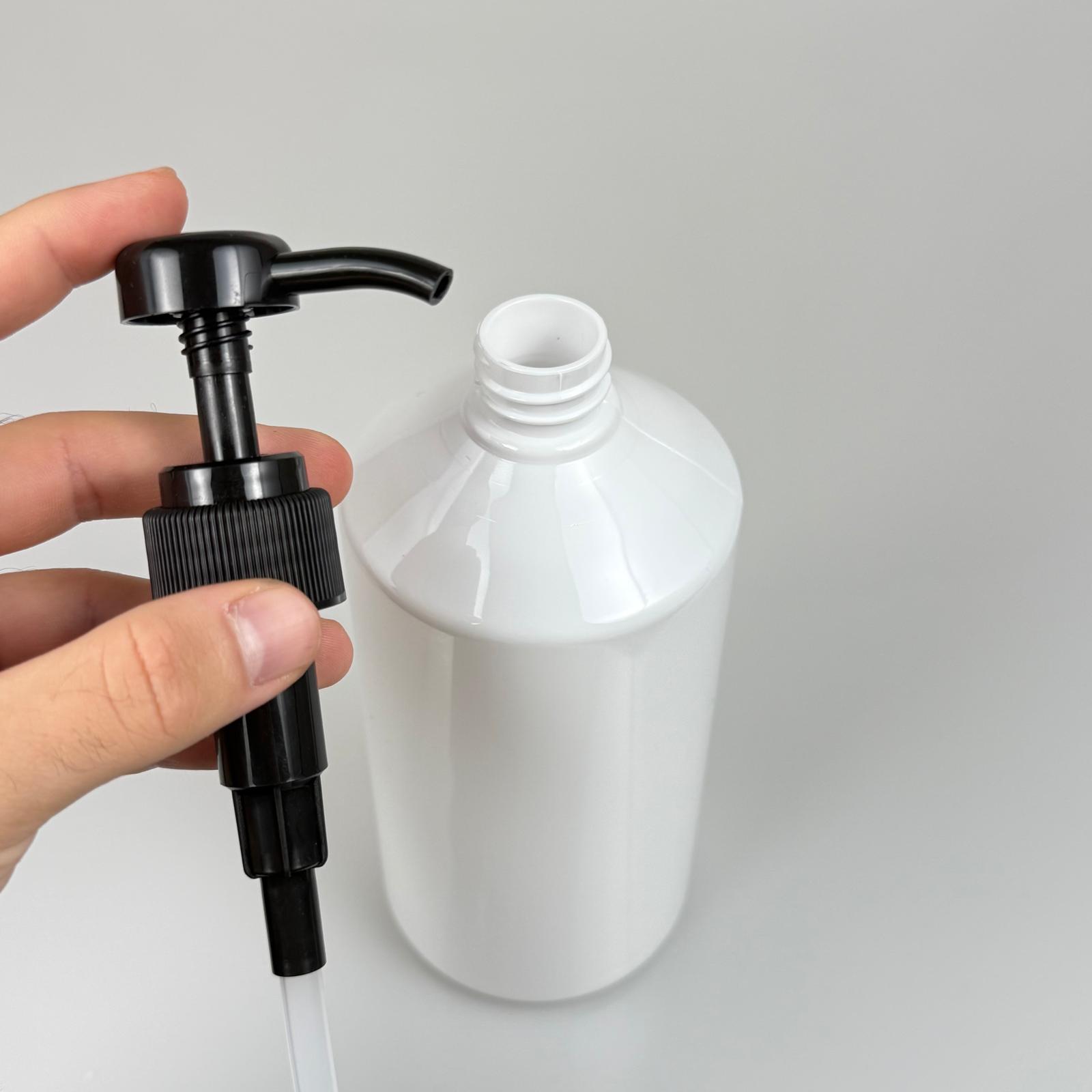 950 CC BEYAZ PET KÜT MODEL ŞİŞE - SİYAH DOZAJ POMPALI (HER BASMADA 4 CC SIVI ATAR) - 950 ML POMPALI ŞİŞE - ŞURUP, ŞAMPUAN, KREM GİBİ YOĞUN KIVAMLI SIVILARDA KULLANILIR - 256 adet