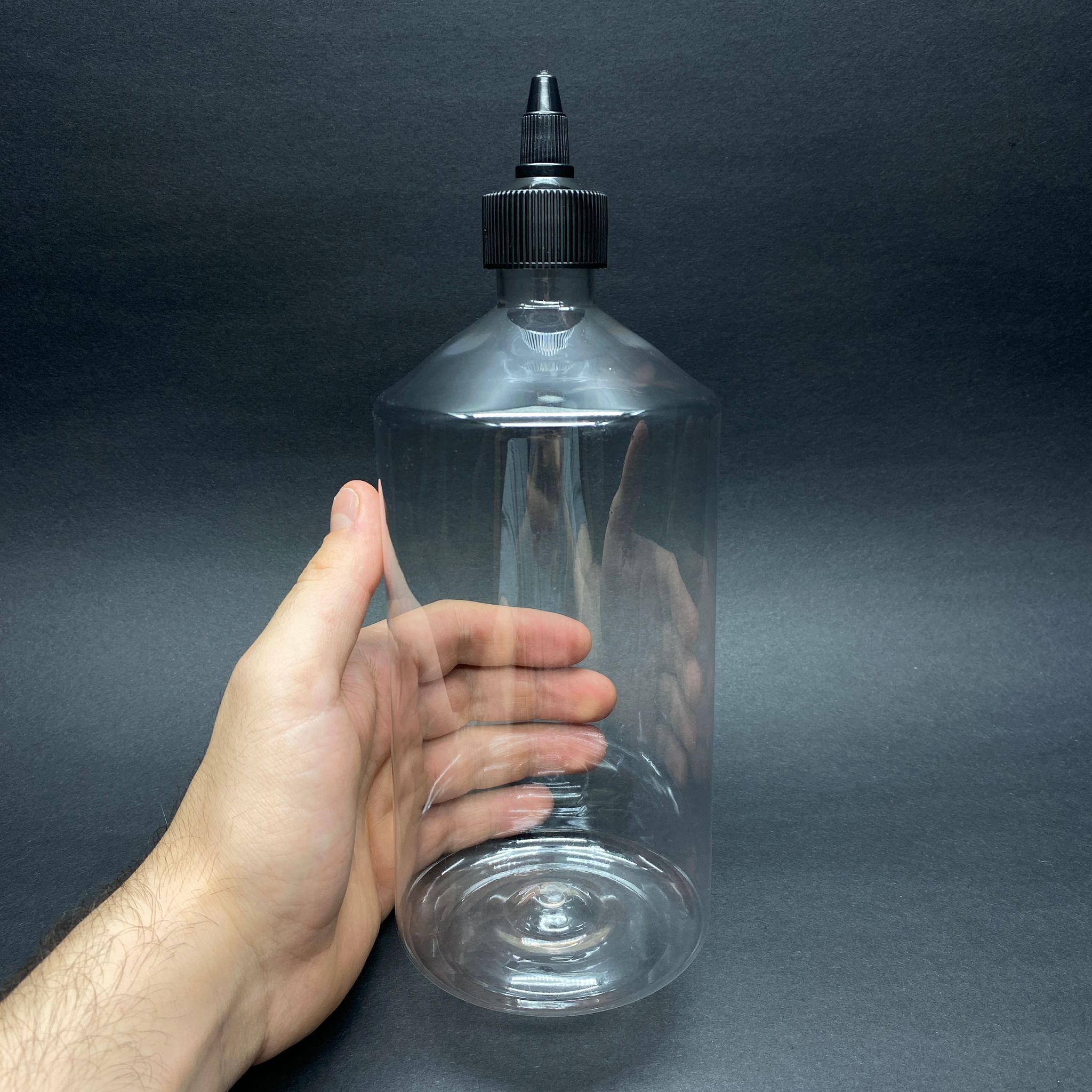 950 CC SİVRİ TWİST ASANSÖR KAPAKLI ŞEFFAF PET ŞİŞE - 950 ML AKITICI SİYAH KAPAKLI PET ŞİŞE - 210 adet