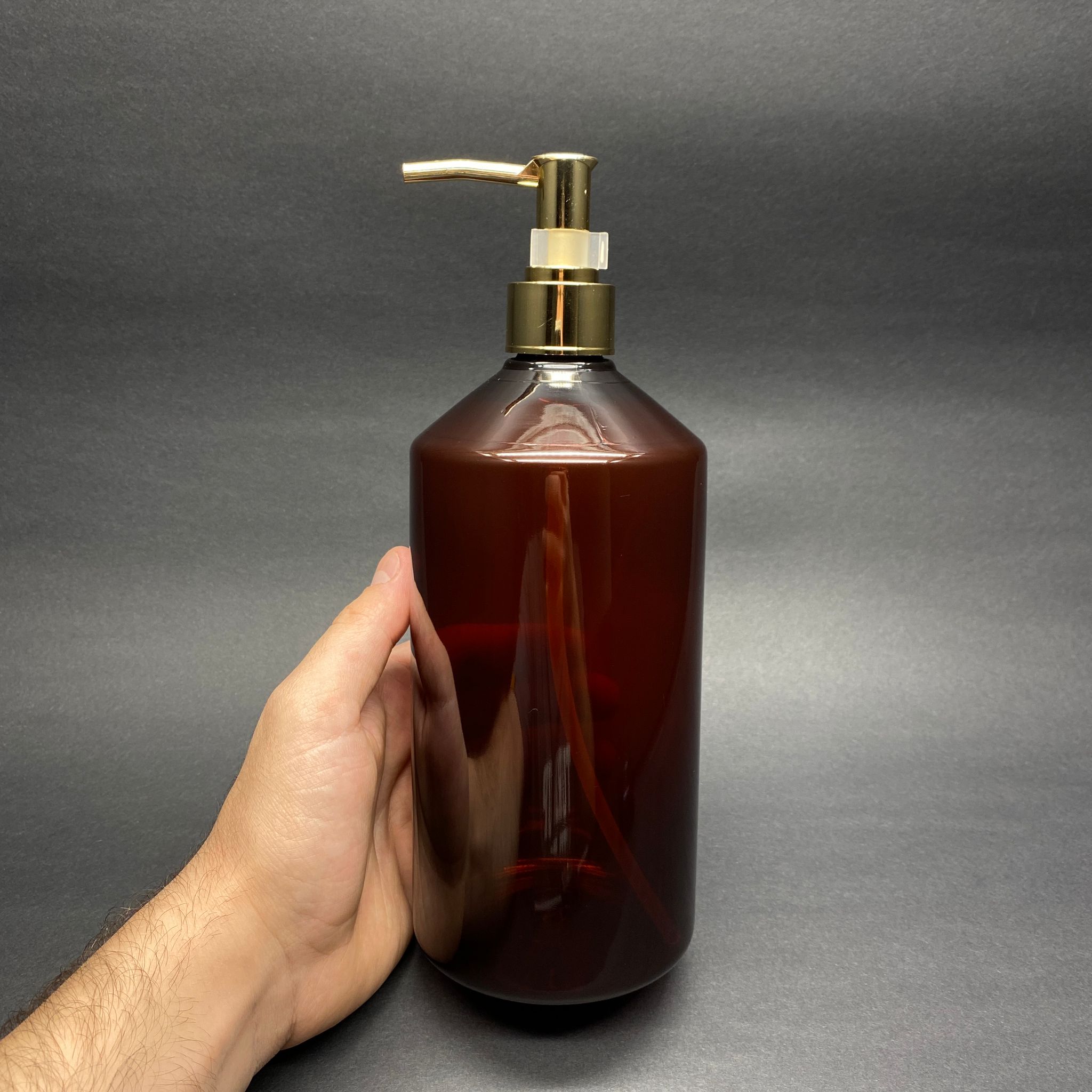 GOLD POMPALI SIVI SABUN ŞİŞESİ - 1000 ML POMPALI AMBER PLASTİK ŞİŞE - 256 adet