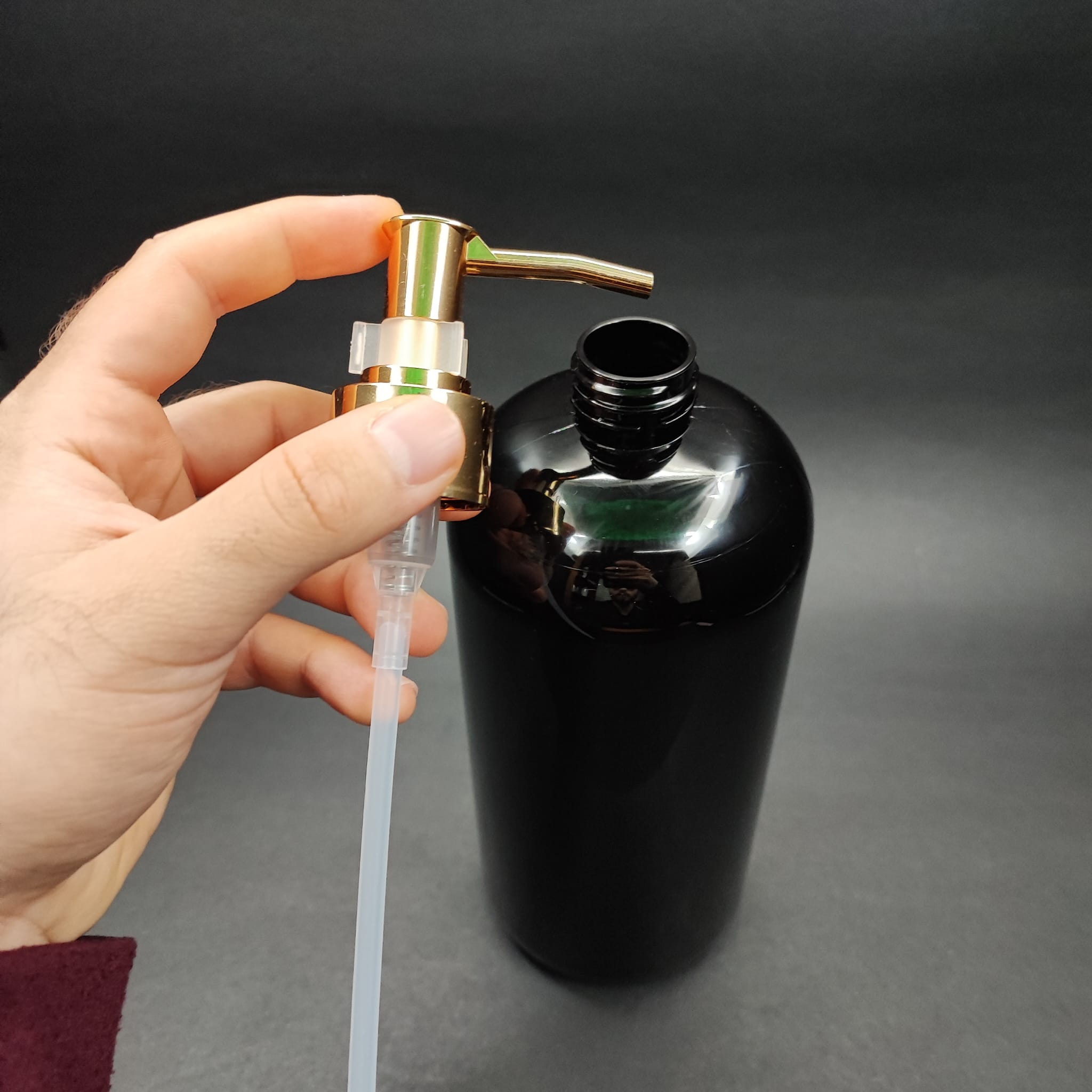 GOLD POMPALI SIVI SABUN ŞİŞESİ - 1000 ML POMPALI SİYAH PLASTİK ŞİŞE - 256 adet