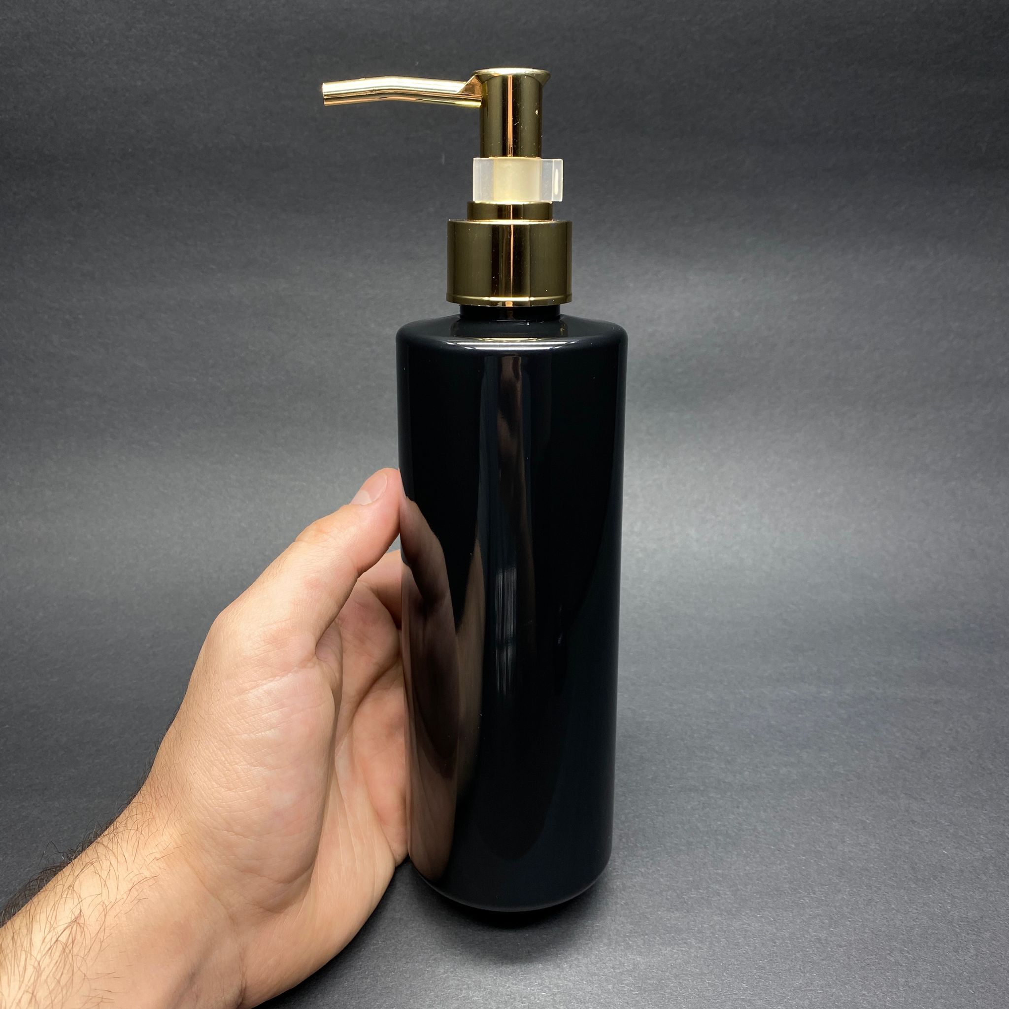 GOLD POMPALI SIVI SABUN ŞİŞESİ - 400 ML POMPALI SİYAH PLASTİK ŞİŞE - 264 adet