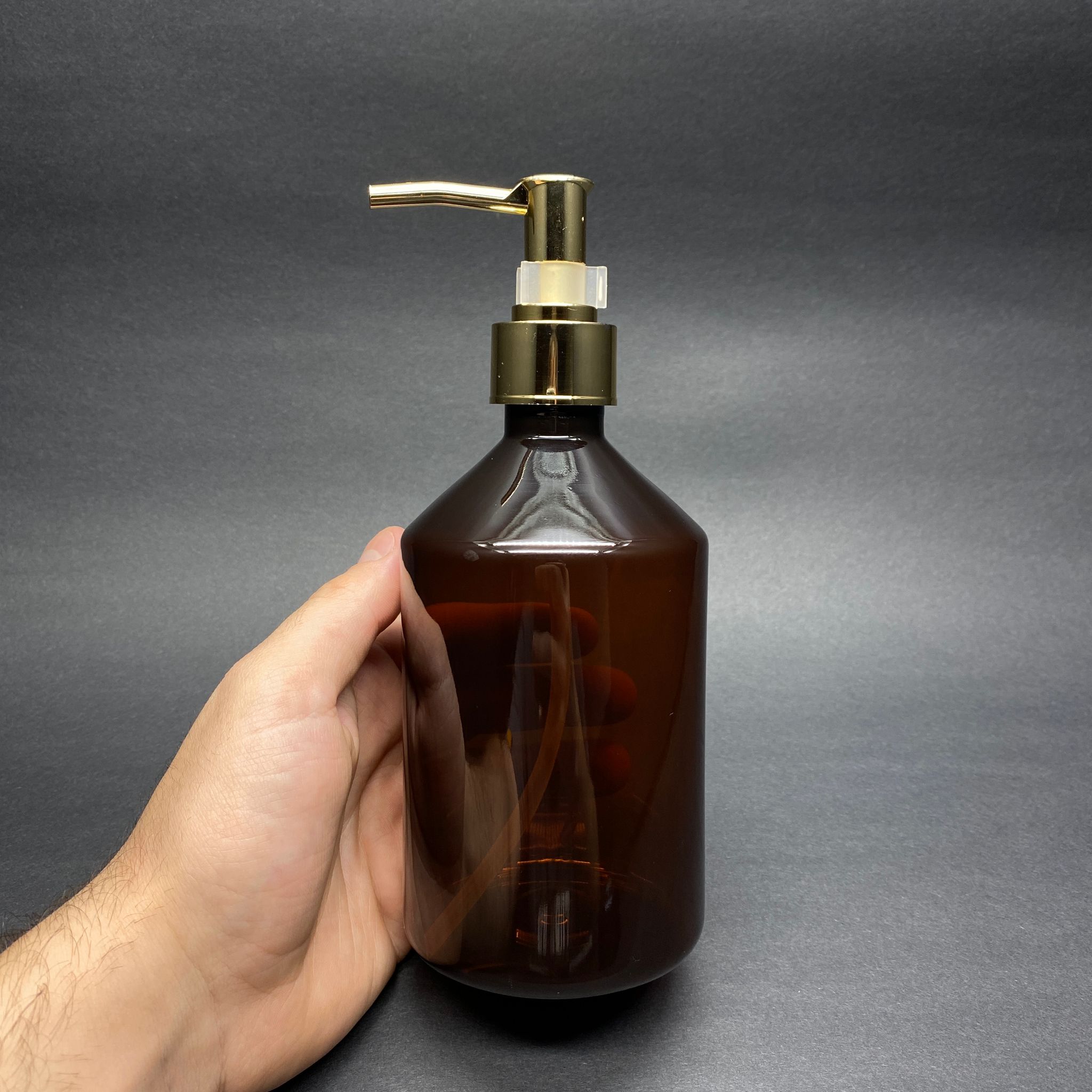 GOLD POMPALI SIVI SABUN ŞİŞESİ - 500 ML POMPALI AMBER PLASTİK ŞİŞE - 380 adet
