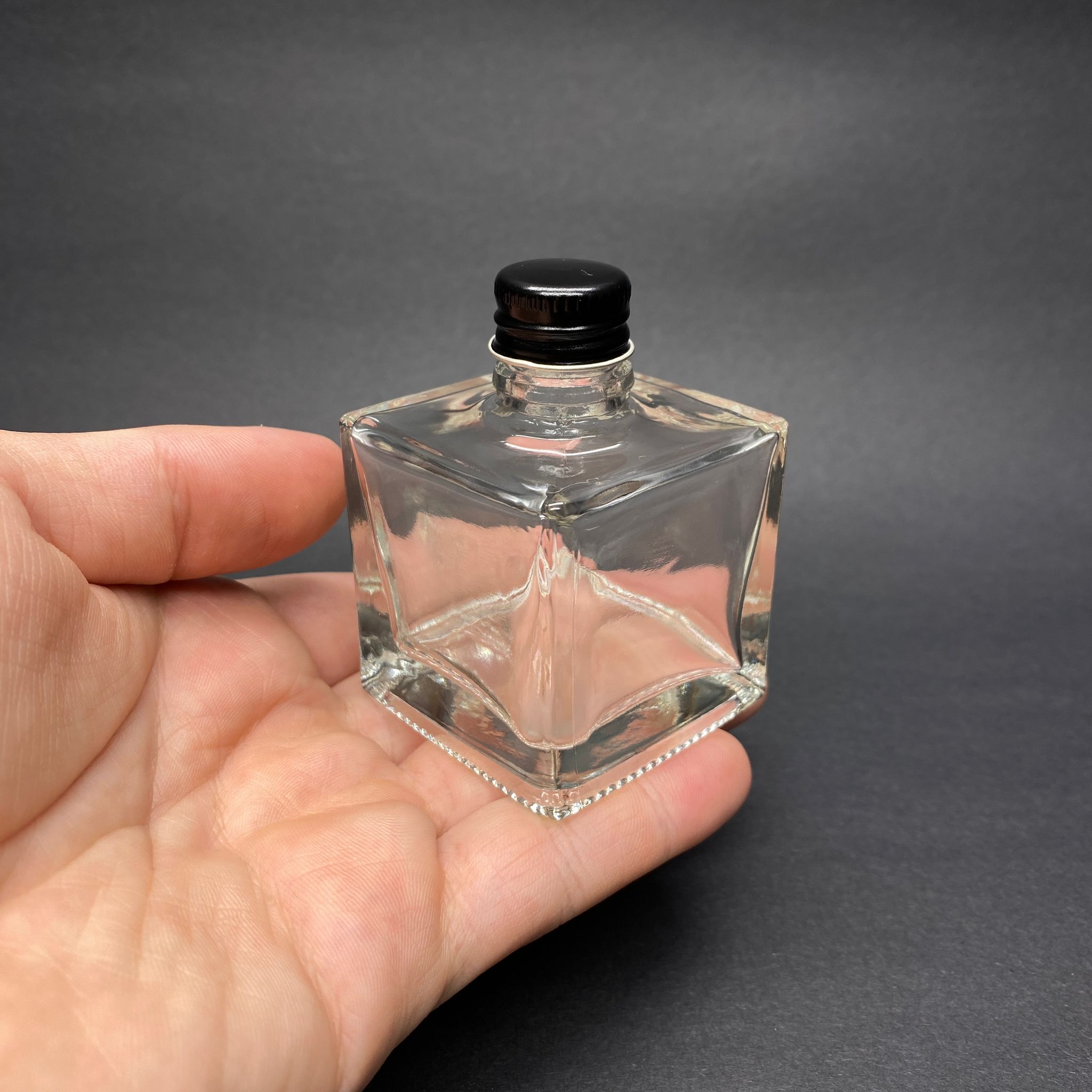 HEDİYELİK CAM KOLONYA ŞİŞESİ - 50 ML KARE ŞİŞE + SİYAH METAL KAPAK + KOLONYA TIPALI TAKIM - 144 adet