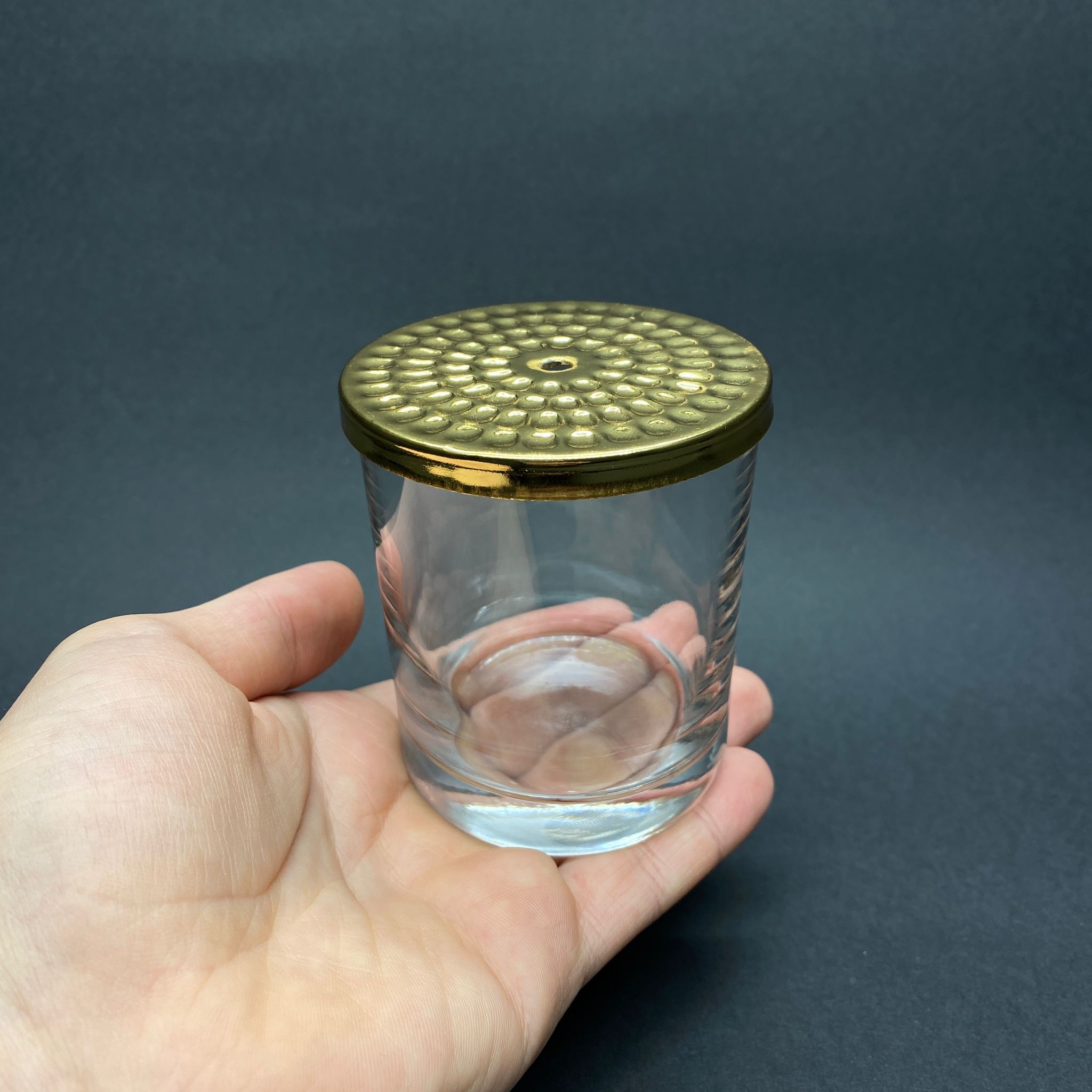 MUM BARDAK DAR - ŞEFFAF - GOLD KAPAKLI MUM İÇİN CAM BARDAK - TOPTAN MUM BARDAK - BOŞ MUM BARDAĞI - 48 adet