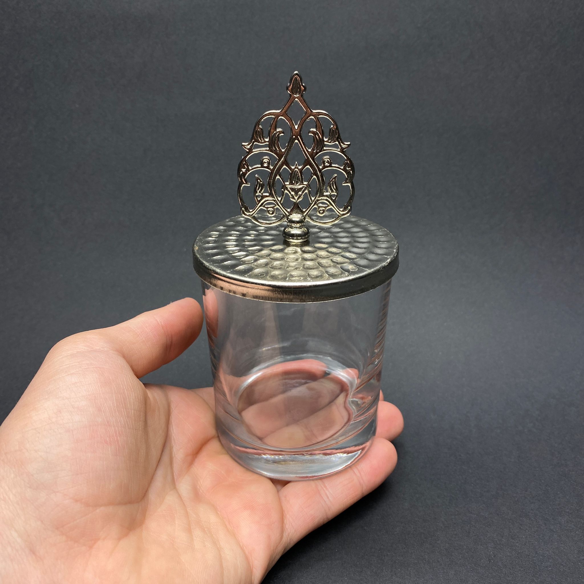 MUM BARDAK DAR - ŞEFFAF - GÜMÜŞ KAPAKLI TEPELİ MUM İÇİN CAM BARDAK - TOPTAN MUM BARDAK - BOŞ MUM BARDAĞI - CAM ŞEKERLİK OLARAK DA KULLANABİLİRSİNİZ - 48 adet