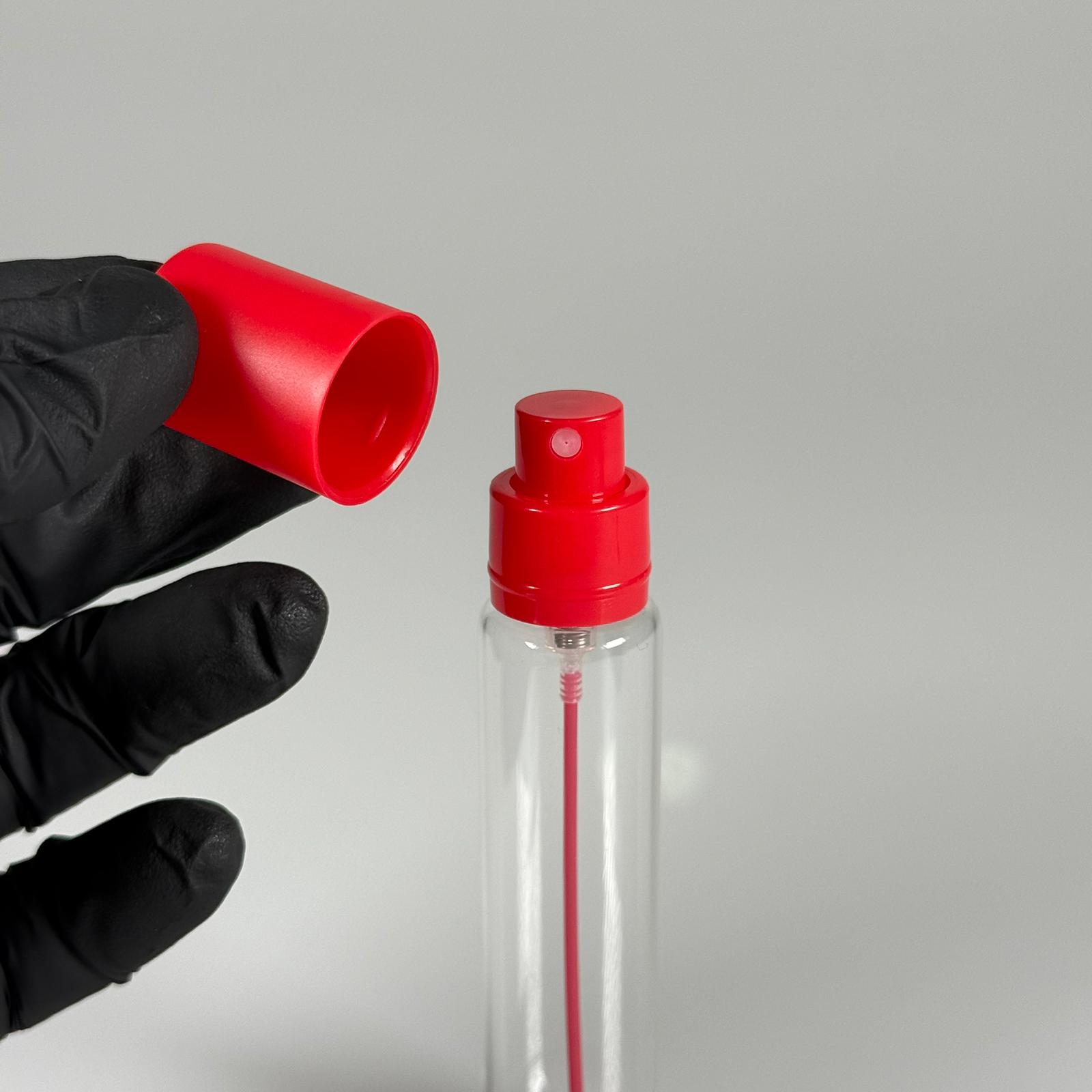 PARFÜM ŞİŞESİ 25 ML - 25 CC PARFÜM AMBALAJI VALFLİ (GEÇME AĞIZ) CAM KALEM PARFÜM İÇİN ŞİŞELERİ - KIRMIZI SPREY + KAPAKLI SET TAKIM - 789 adet