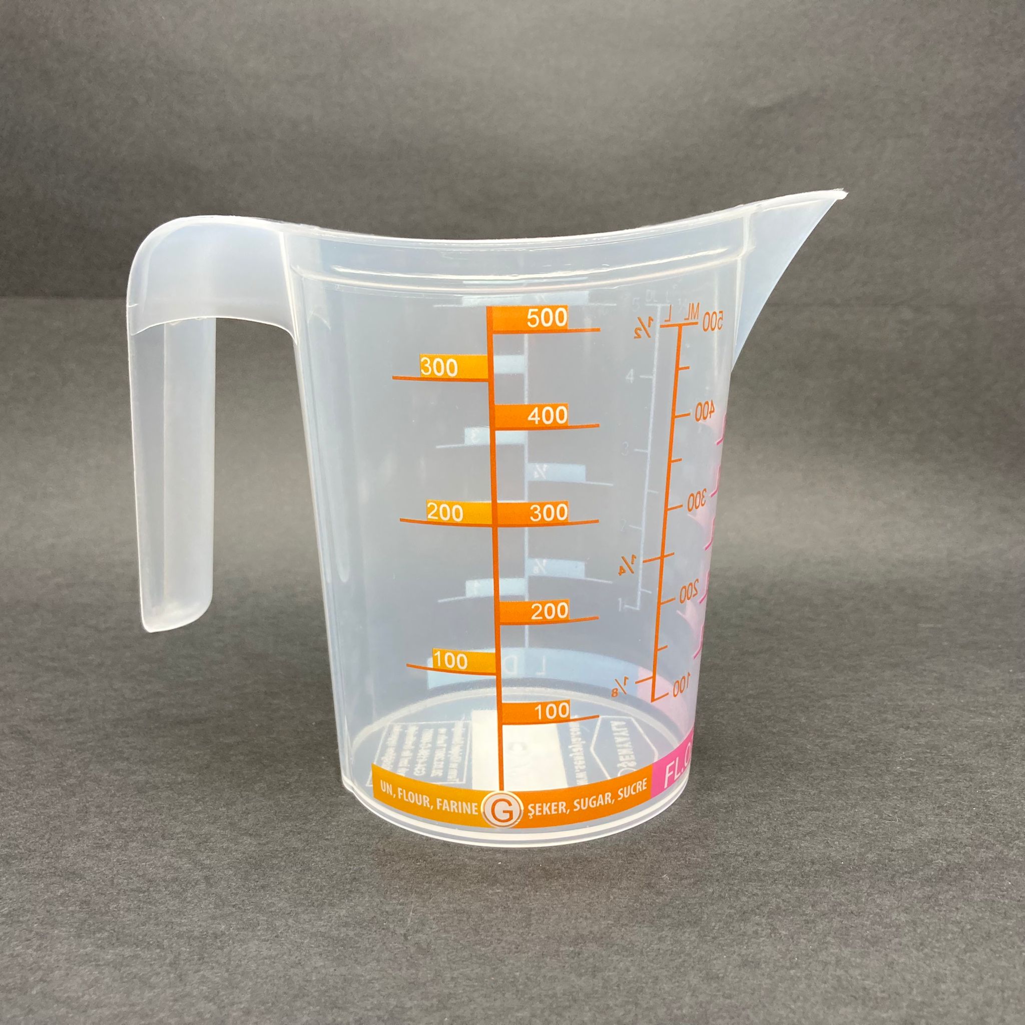 PLASTİK ÖLÇÜ KABI - ÖZEL ÖLÇEKLİ KAP 0,5 LİTRE - DERECELİ ÖLÇEK - UN ŞEKER VS İÇİN AYRI AYRI GÖSTERİR - 40 adet