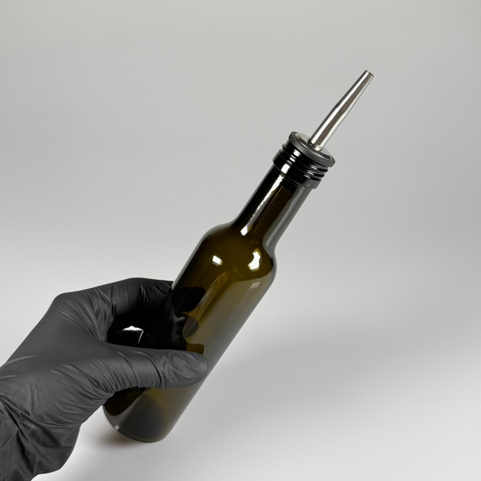 SİLİNDİR CAM YAĞLIK - 250 ML YEŞİL YUVARLAK CAM ŞİŞE + ÇELİK YAĞDANLIK TIPASI TAKIM - 60 adet