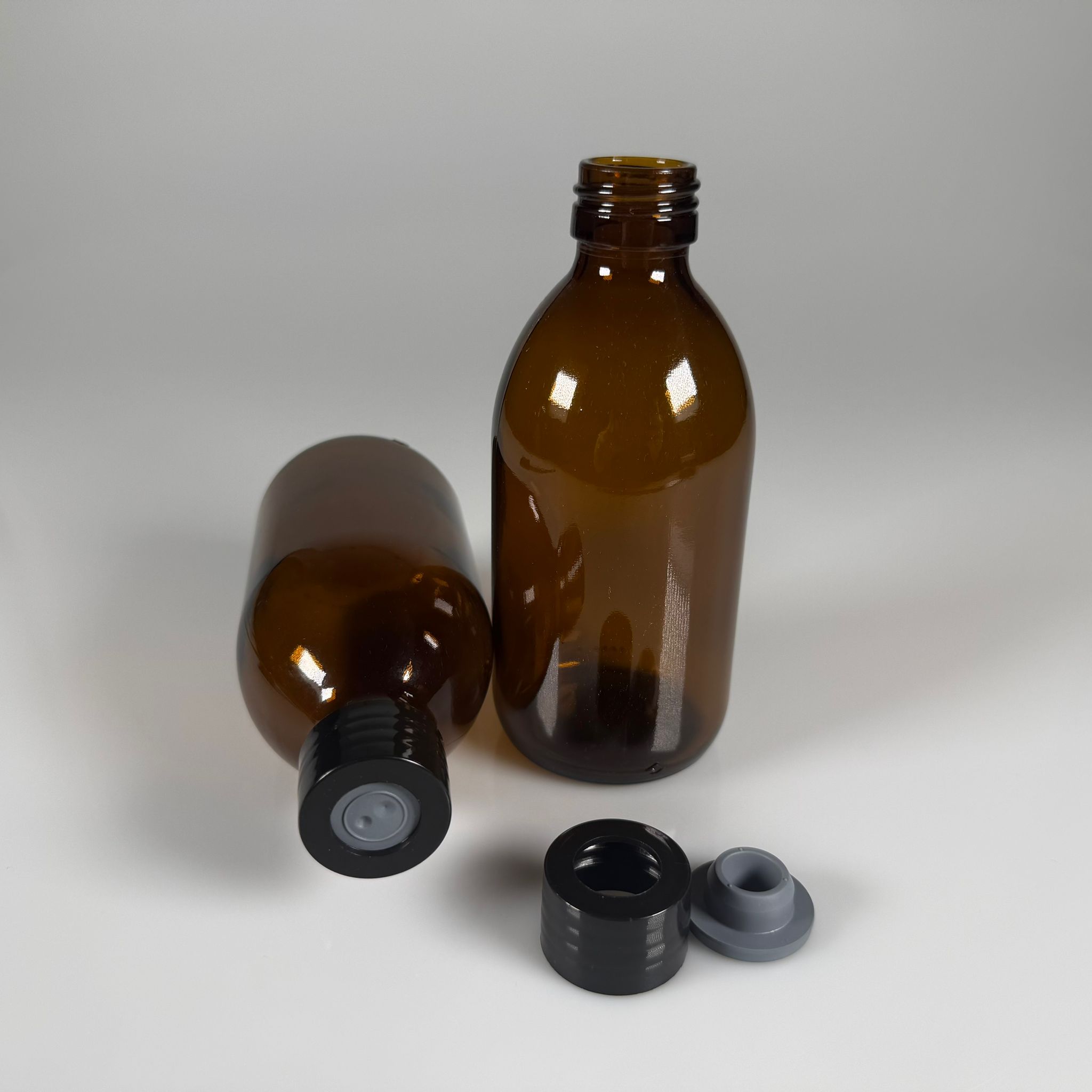 250 CC AMBER CAM ŞİŞE - SİYAH PLASTİK KAPAKLI - 250 ML KAHVERENGİ BOŞ ŞURUP ŞİŞESİ - 98 adet