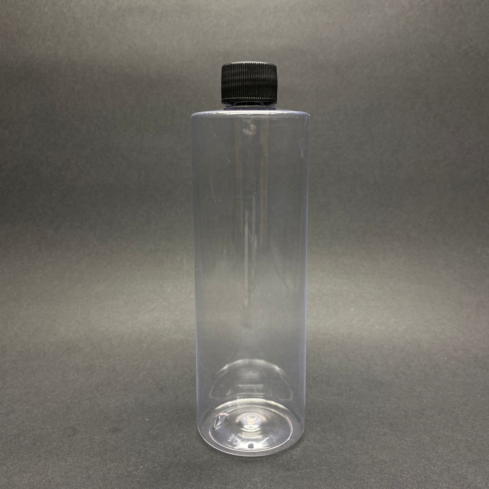 400 CC KÜT BOYUNLU SİLİNDİR PET ŞİŞE (30 GR) - SİYAH CONTALI KAPAKLI - 400 ML PLASTİK ŞİŞE - ŞEFFAF - 288 adet