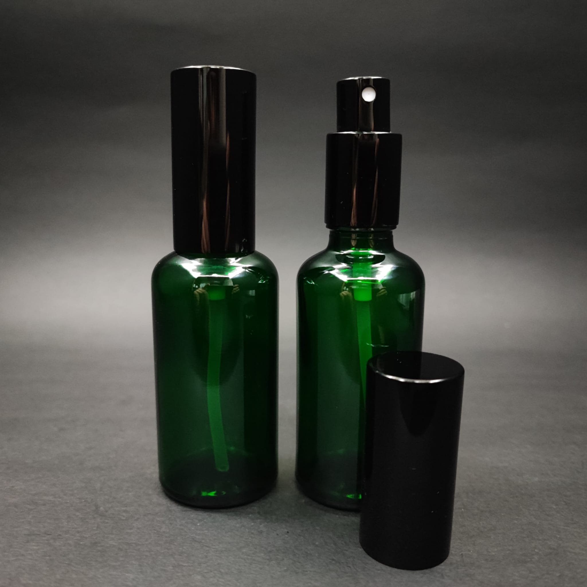 50 ML LÜKS VİDALI VALF ÇEVİRME PARFÜM ŞİŞELERİ - 50 CC YEŞİL CAM ŞİŞE - SİYAH METAL SPREYLİ KAPAKLI SET - 88 adet