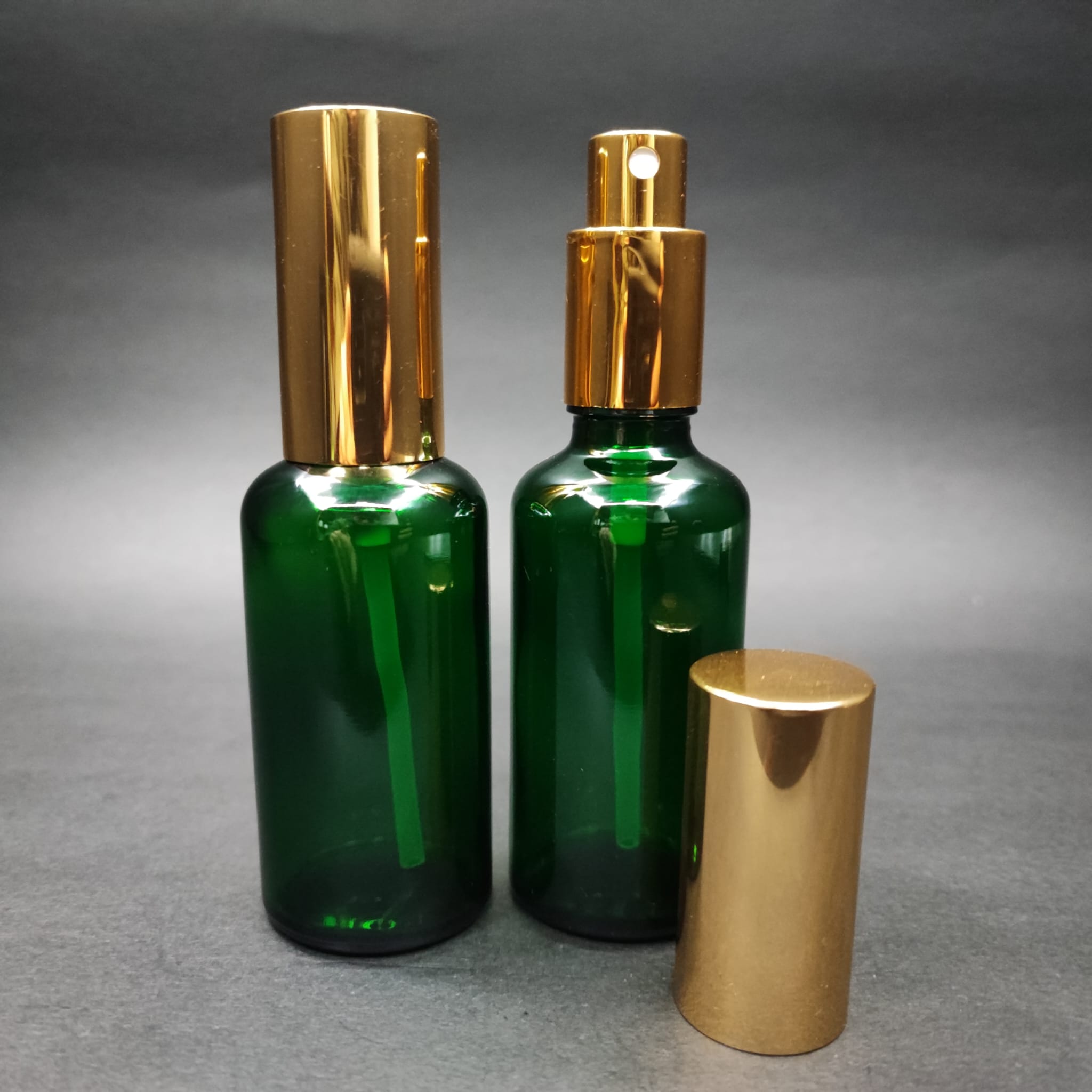 50 ML LÜKS VİDALI VALF ÇEVİRME PARFÜM ŞİŞELERİ - 50 CC YEŞİL CAM ŞİŞE - GOLD METAL SPREYLİ KAPAKLI SET - 88 adet