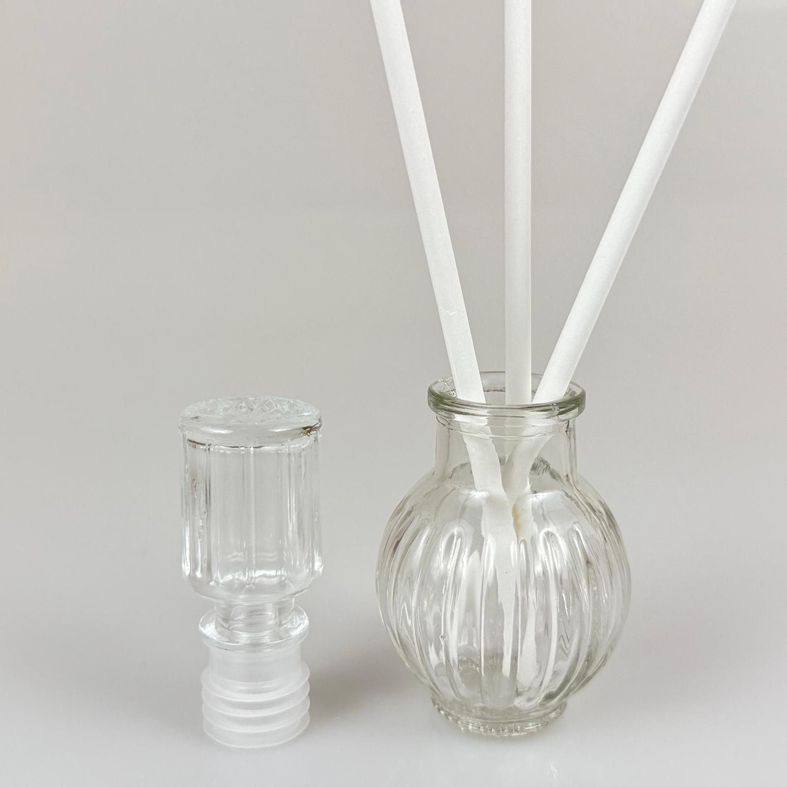 YUVARLAK LÜKS MODEL CAM BAMBU ODA KOKUSU ŞİŞESİ + CAM TIPA + 3 ADET FİBER BEYAZ BAMBU ÇUBUK - 50 ML SET TAKIM - HEDİYELİK PROMOSYON LÜX DİFFUSER ŞİŞELERİ - 144 adet