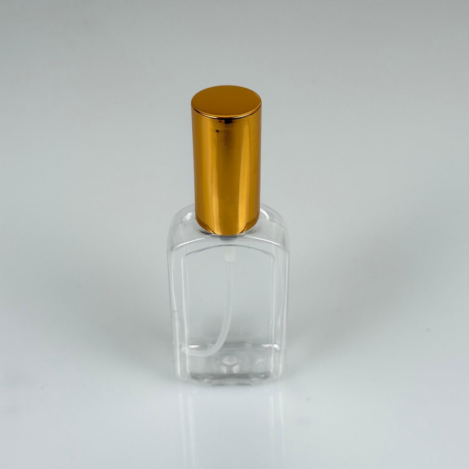 50 ML PET KOLONYA, PARFÜM VB ŞİŞELERİ - METAL ALÜMİNYUM GOLD KAPAK + VİDALI SPREY + 50 CC KÖŞELİ YASSI ŞİŞE SET TAKIM - 1000 adet