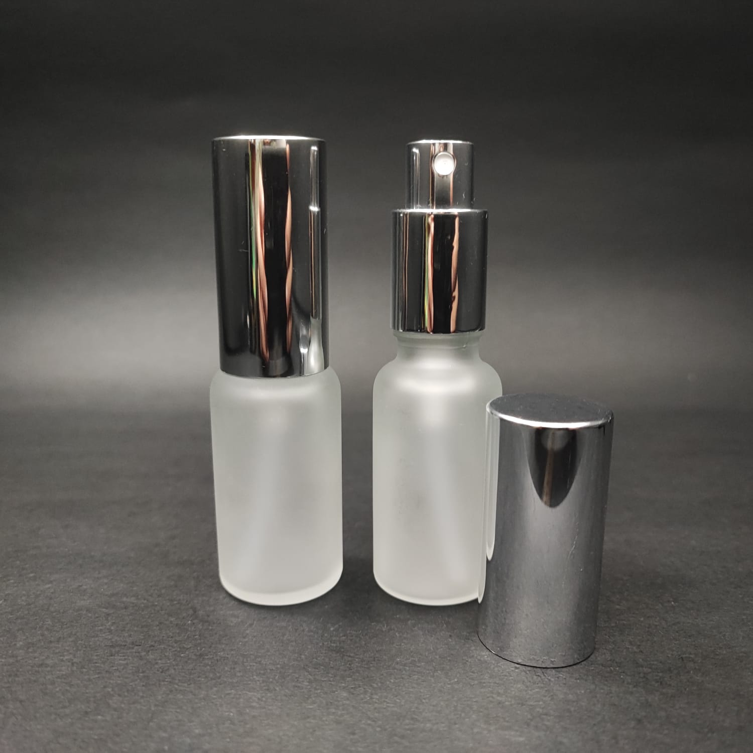 20 ML LÜKS VİDALI VALF ÇEVİRME PARFÜM ŞİŞELERİ - 20 CC BUZLU CAM ŞİŞE - GÜMÜŞ METAL SPREYLİ KAPAKLI SET - 556 adet