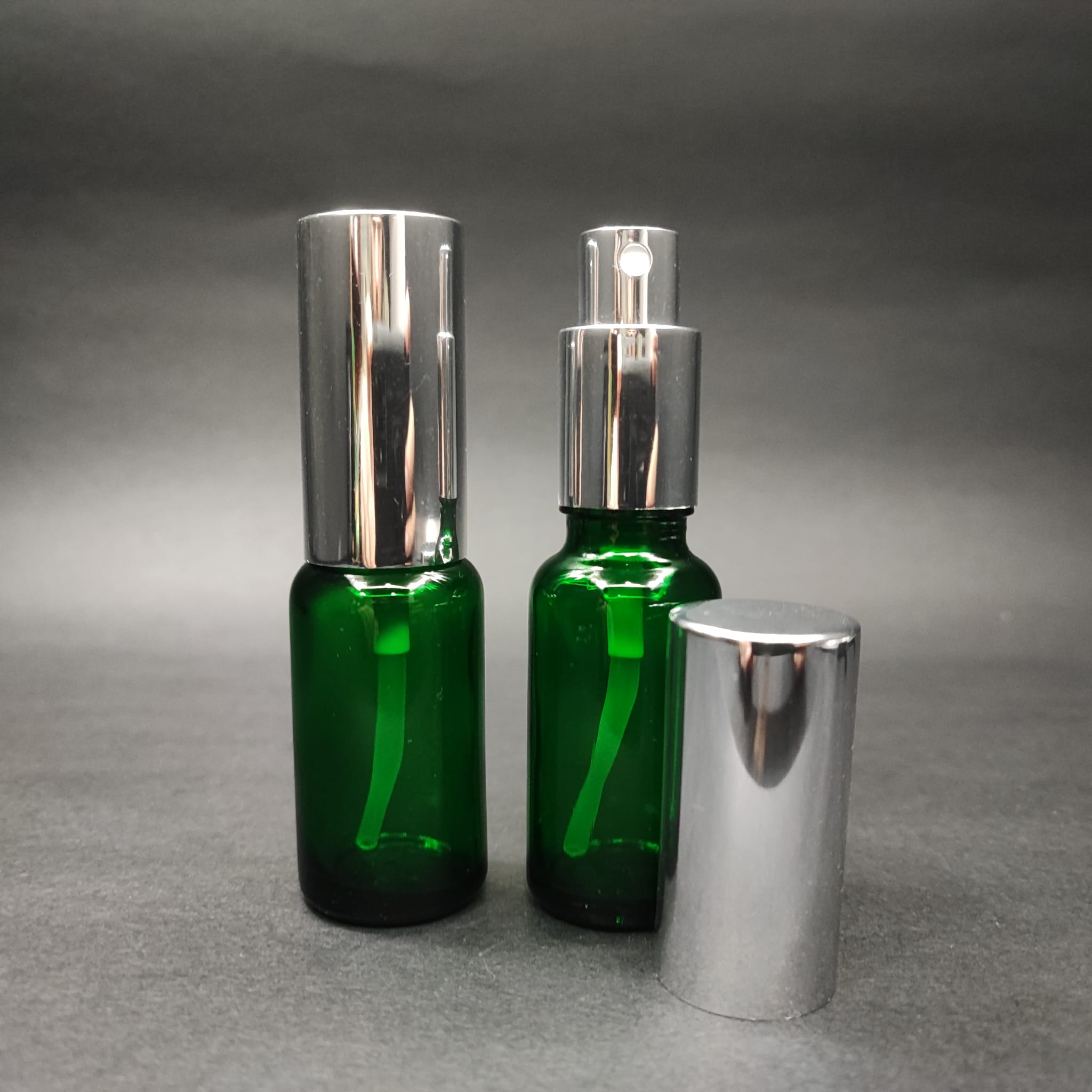 20 ML LÜKS VİDALI VALF ÇEVİRME PARFÜM ŞİŞELERİ - 20 CC YEŞİL CAM ŞİŞE - GÜMÜŞ METAL SPREYLİ KAPAKLI SET - 156 adet