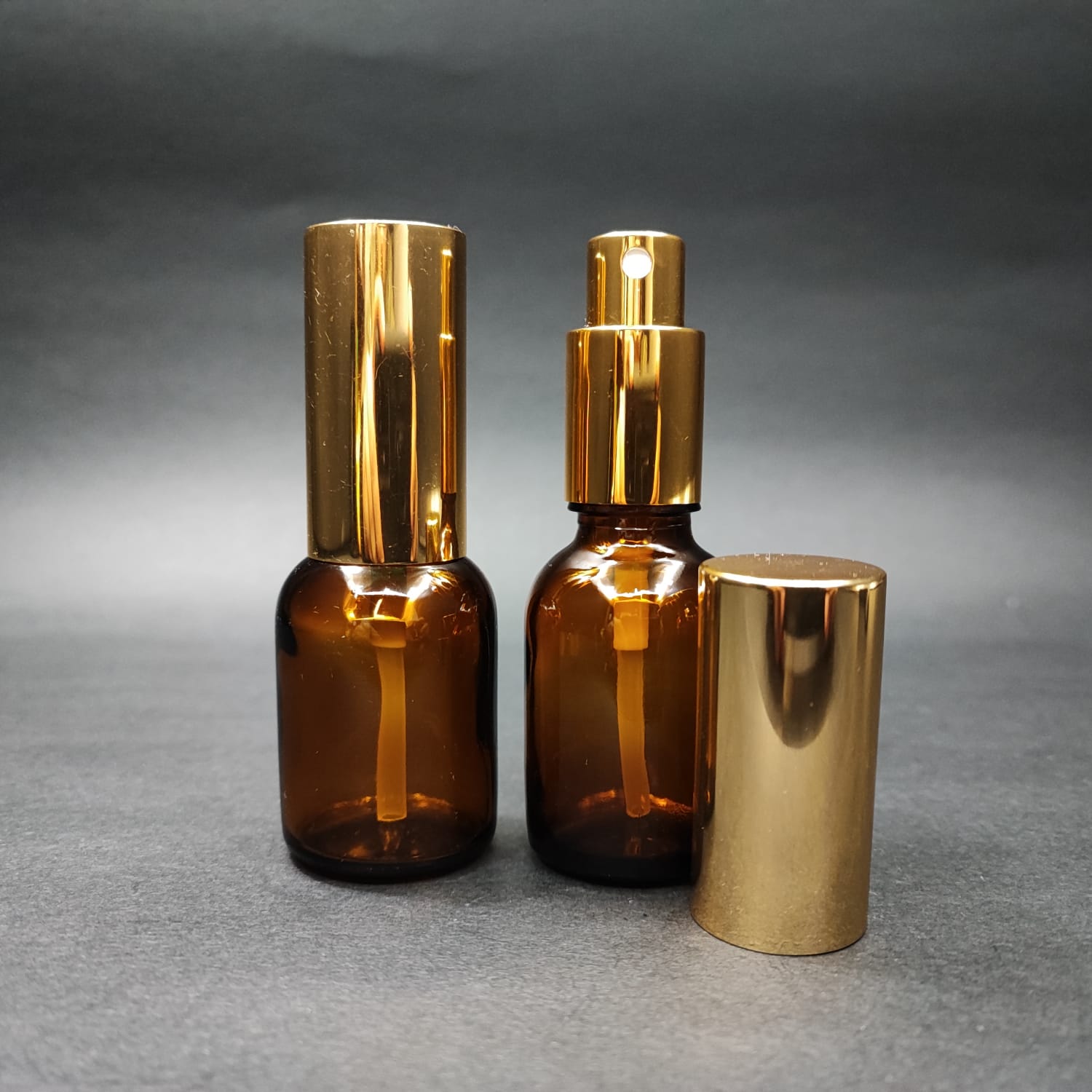 25 ML LÜKS VİDALI VALF ÇEVİRME PARFÜM ŞİŞELERİ - 25 CC TOMBUL AMBER CAM ŞİŞE - GOLD METAL SPREYLİ KAPAKLI SET - 442 adet