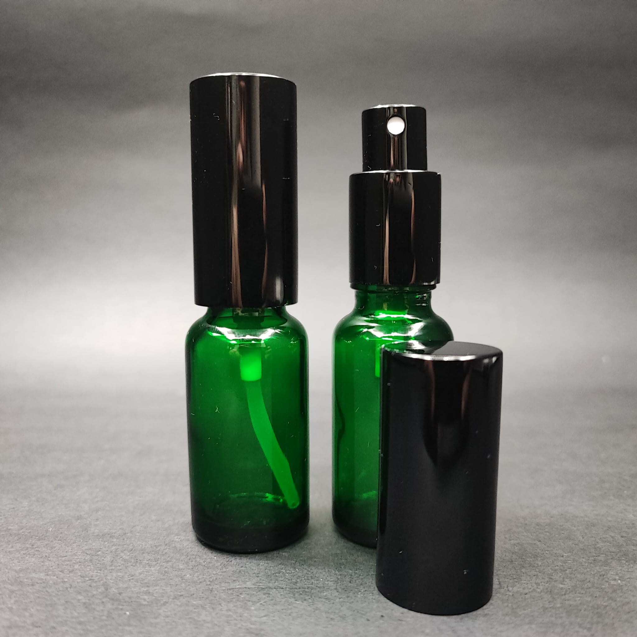 20 ML LÜKS VİDALI VALF ÇEVİRME PARFÜM ŞİŞELERİ - 20 CC YEŞİL CAM ŞİŞE - SİYAH METAL SPREYLİ KAPAKLI SET - 156 adet