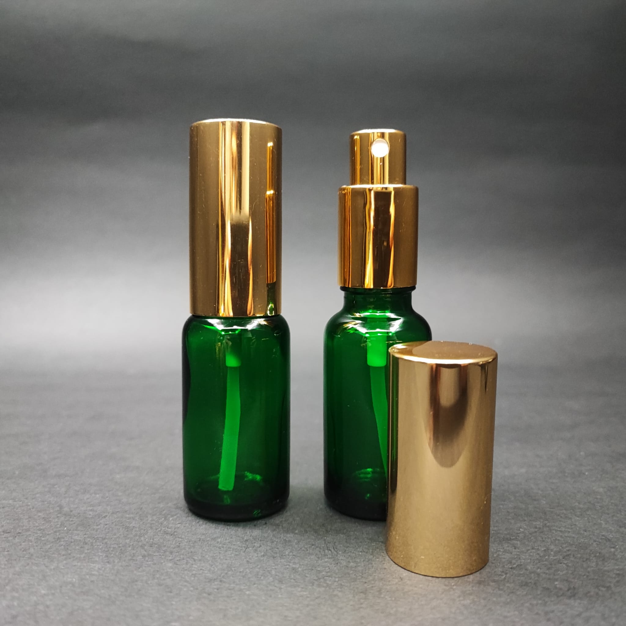 20 ML LÜKS VİDALI VALF ÇEVİRME PARFÜM ŞİŞELERİ - 20 CC YEŞİL CAM ŞİŞE - GOLD METAL SPREYLİ KAPAKLI SET - 156 adet