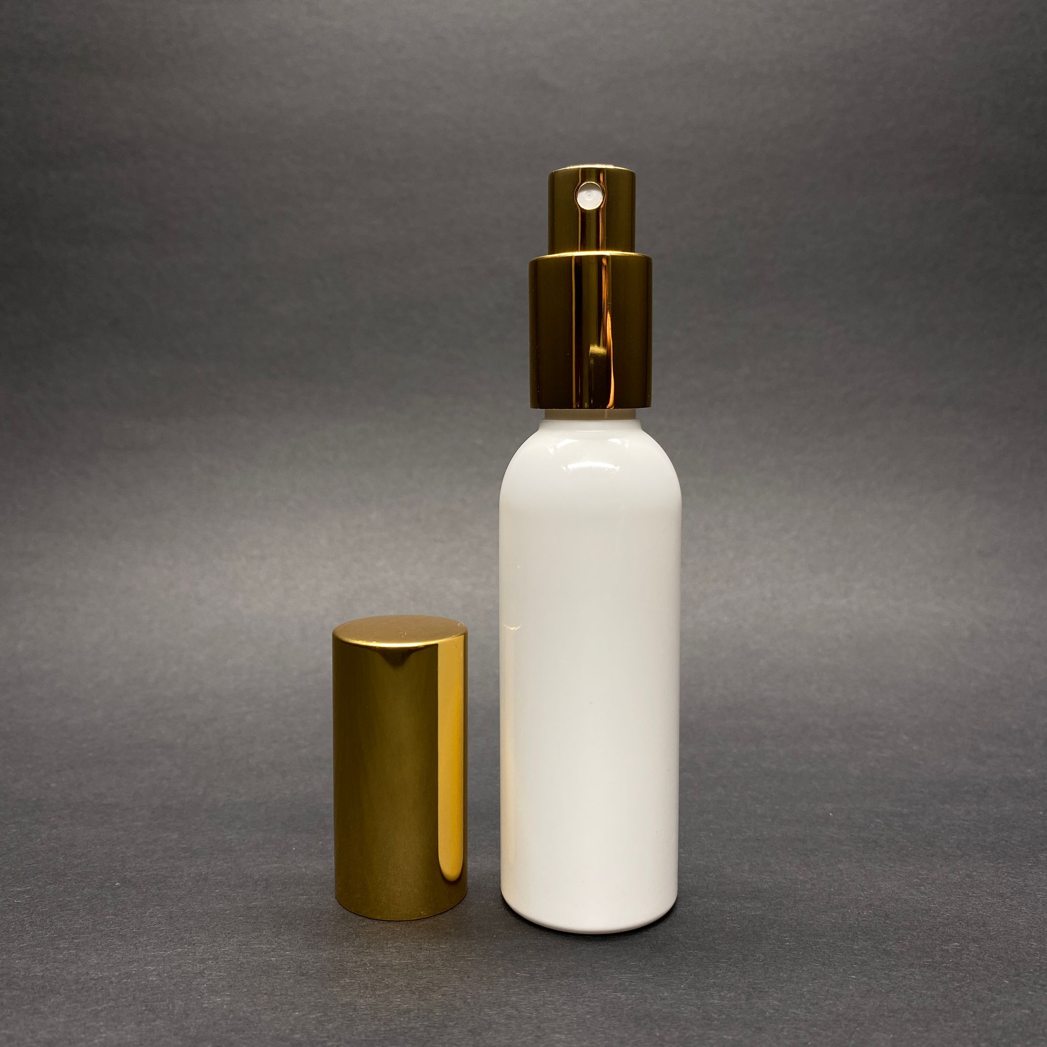 50 CC BEYAZ LÜX GOLD METAL SPREYLİ PET PARFÜM ŞİŞESİ - 50 ML BEYAZ PET SPREY ŞİŞE - 1000 adet