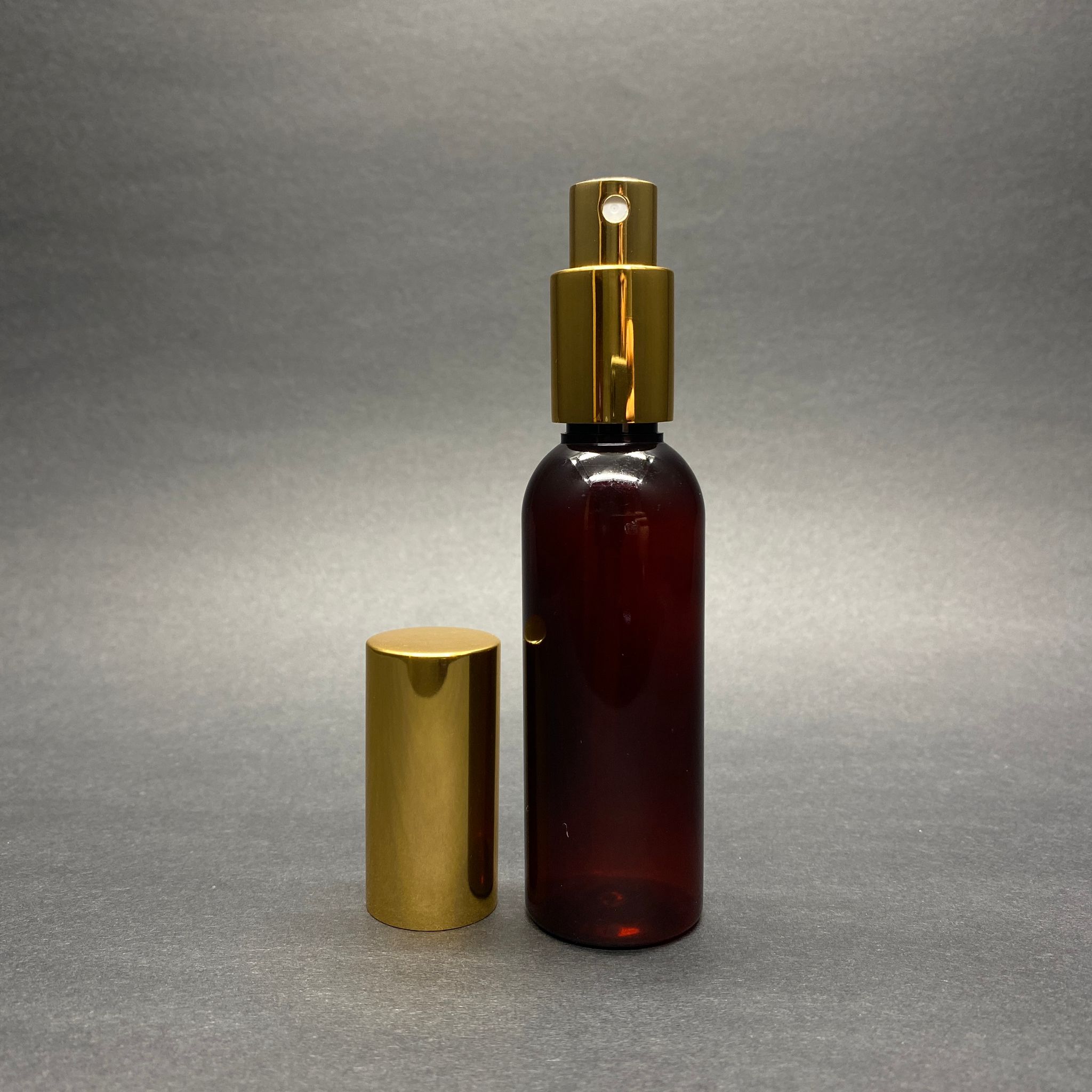 50 CC AMBER LÜX GOLD METAL SPREYLİ PET PARFÜM ŞİŞESİ - 50 ML KAHVERENGİ PET SPREY ŞİŞE - 1000 adet