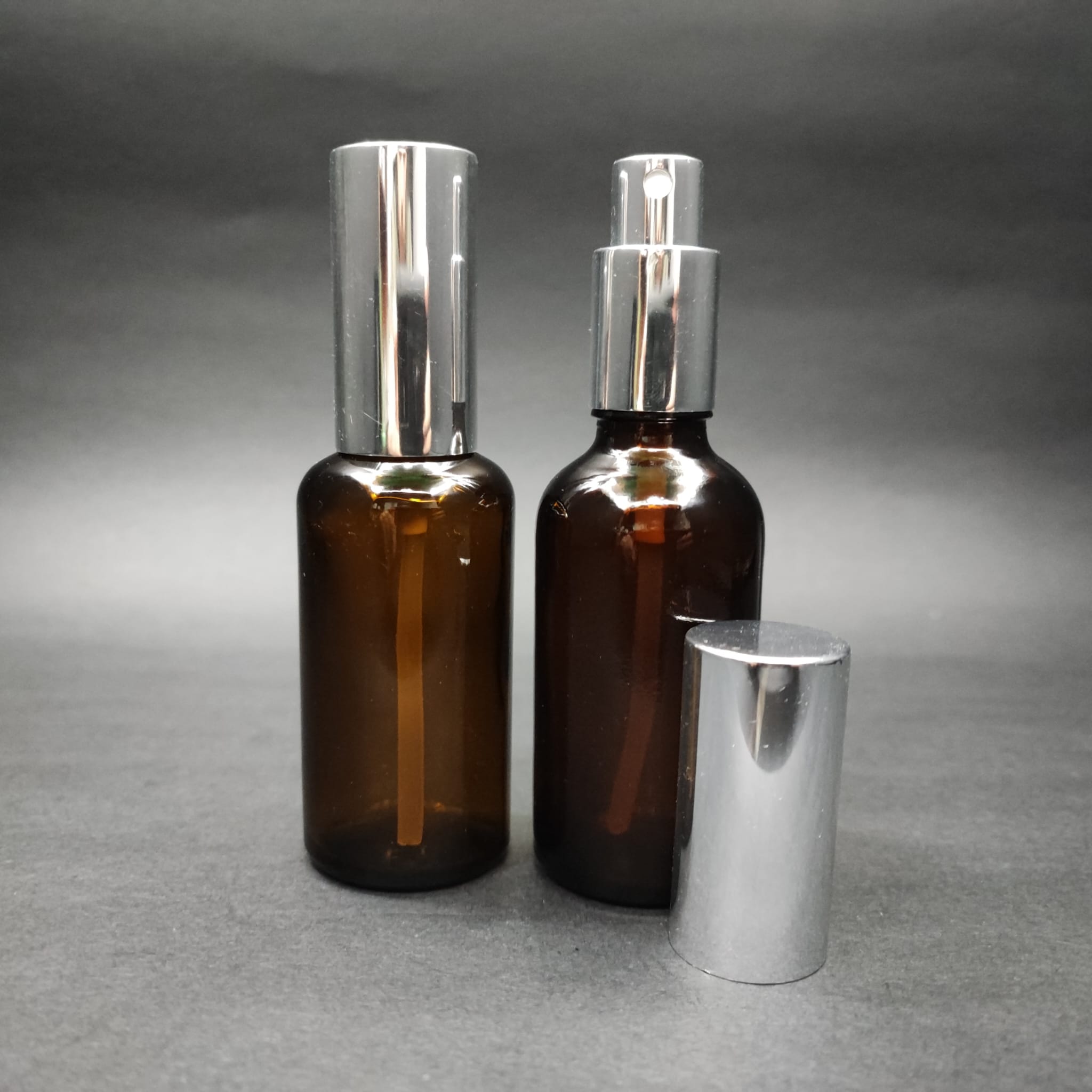 50 ML LÜKS VİDALI VALF ÇEVİRME PARFÜM ŞİŞELERİ - 50 CC AMBER CAM ŞİŞE - GÜMÜŞ METAL SPREYLİ KAPAKLI SET - 172 adet