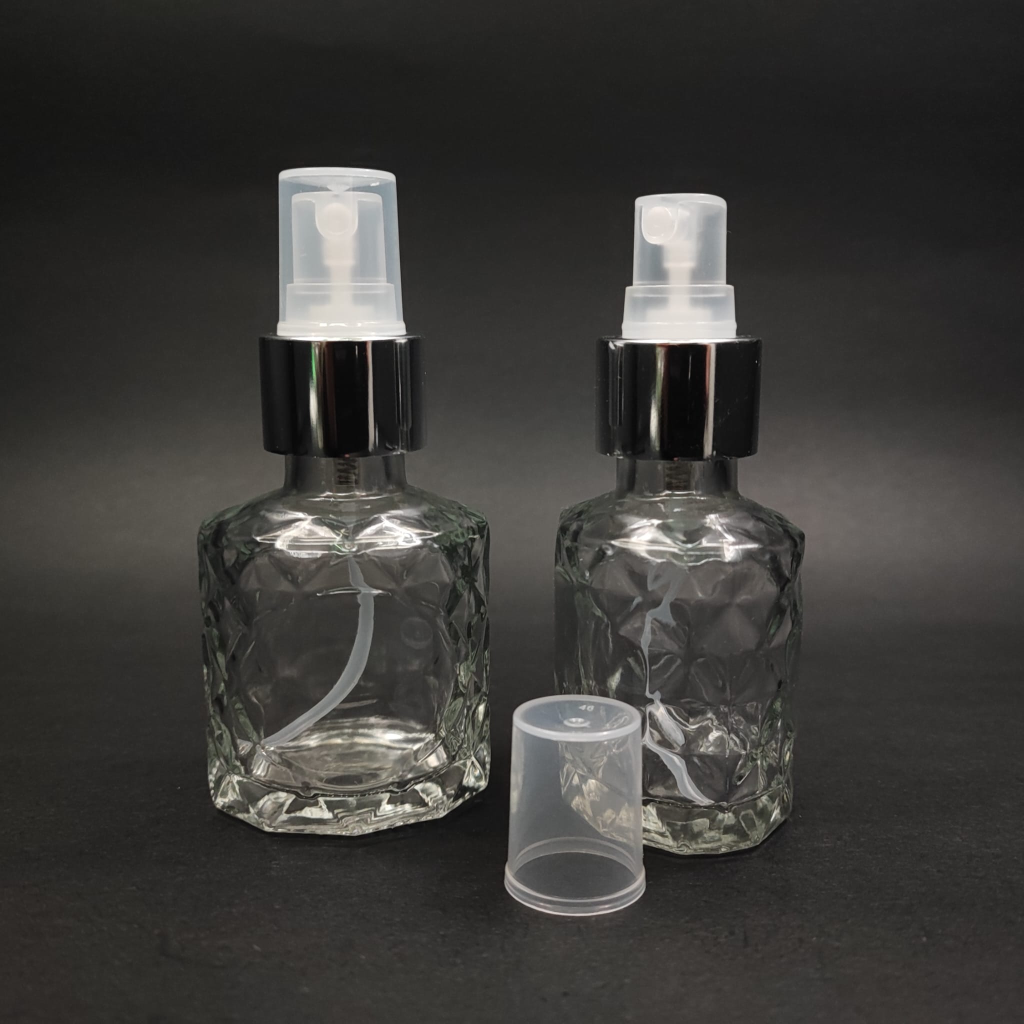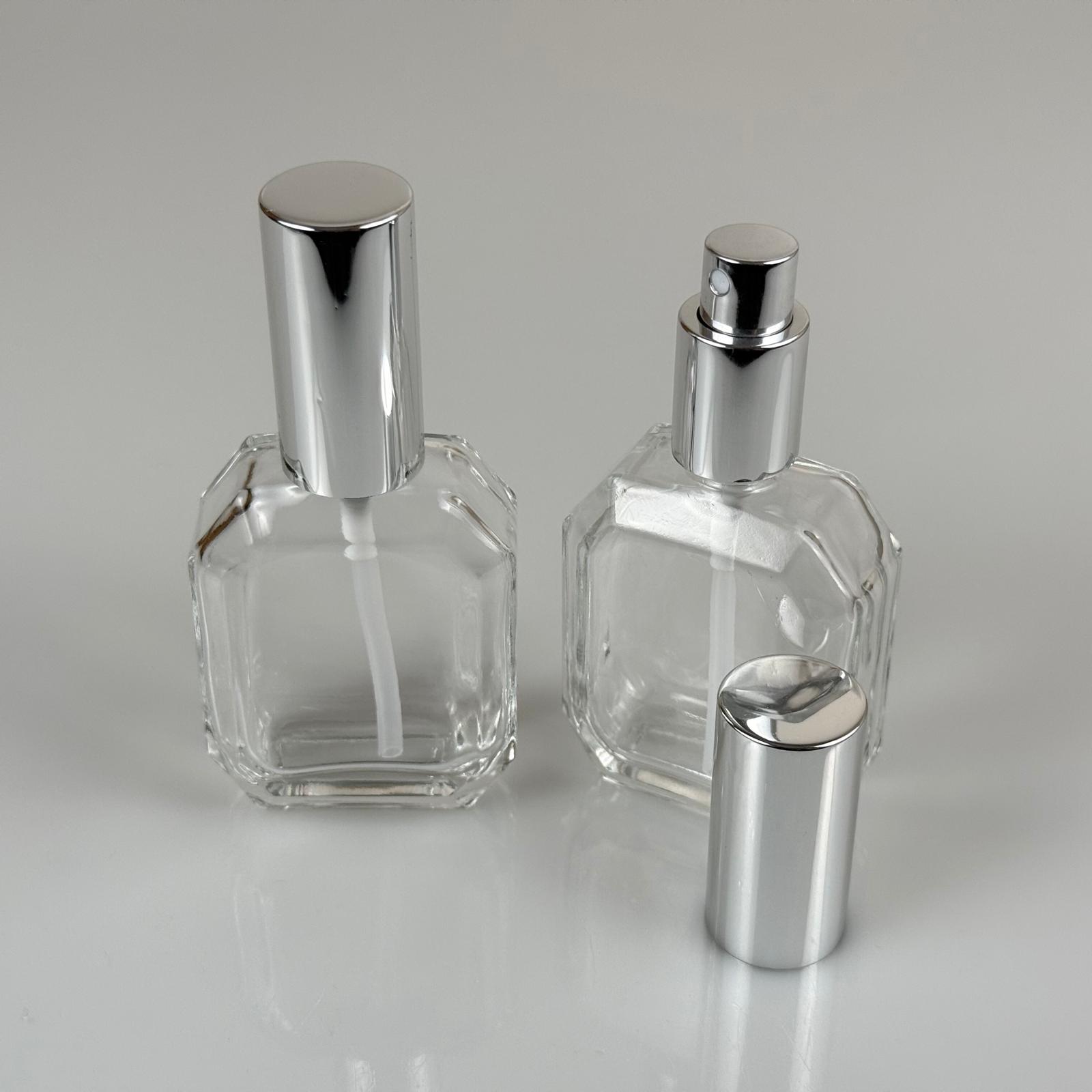 50 CC BOĞAZLI YASSI CAM ŞİŞE - VİDALI GÜMÜŞ SPREYLİ PARFÜM KOLONYA ŞİŞESİ TAKIM - 50 ML PRESTİJLİ ŞİŞE - 378 adet