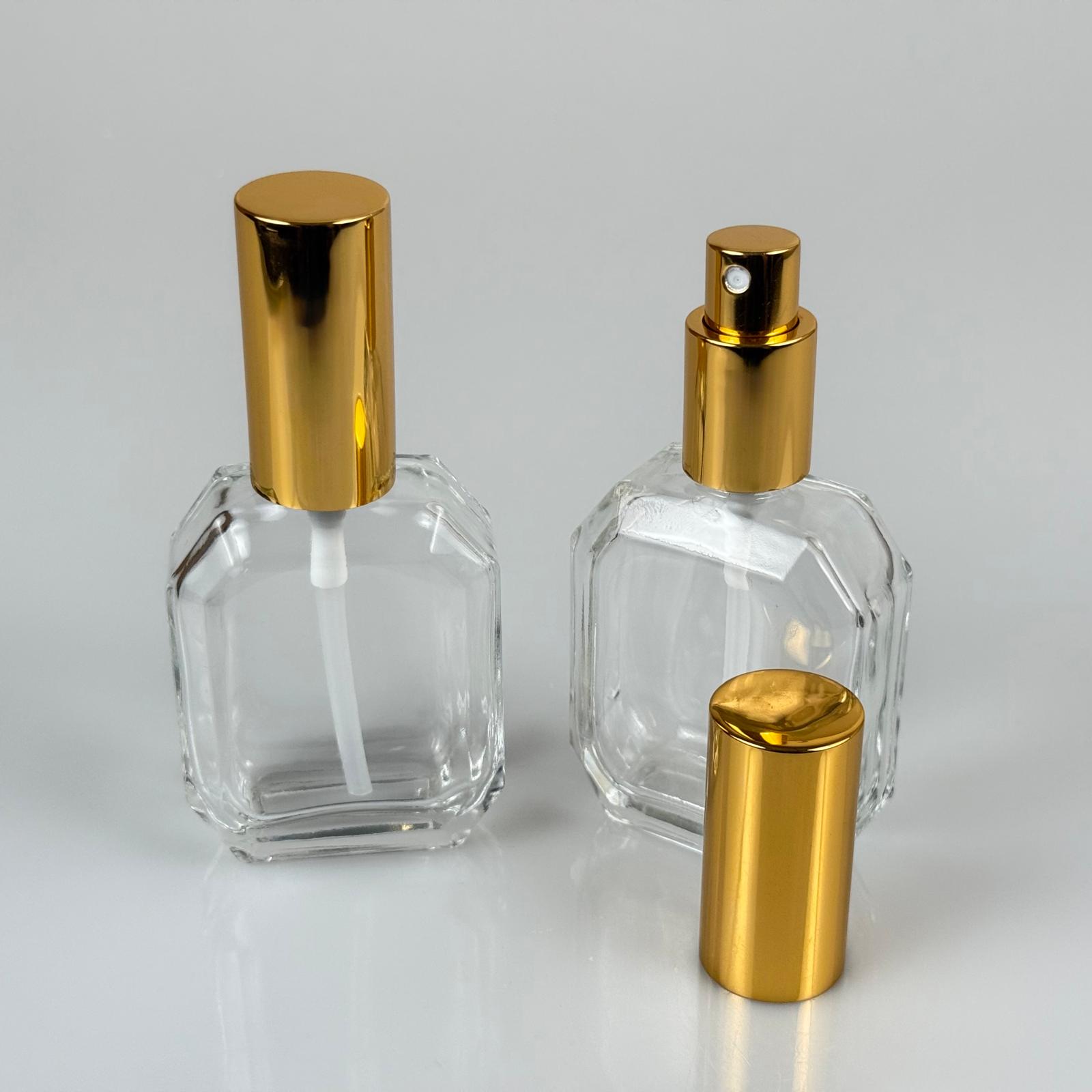 50 CC BOĞAZLI YASSI CAM ŞİŞE - VİDALI GOLD SPREYLİ PARFÜM KOLONYA ŞİŞESİ TAKIM - 50 ML PRESTİJLİ ŞİŞE - 378 adet