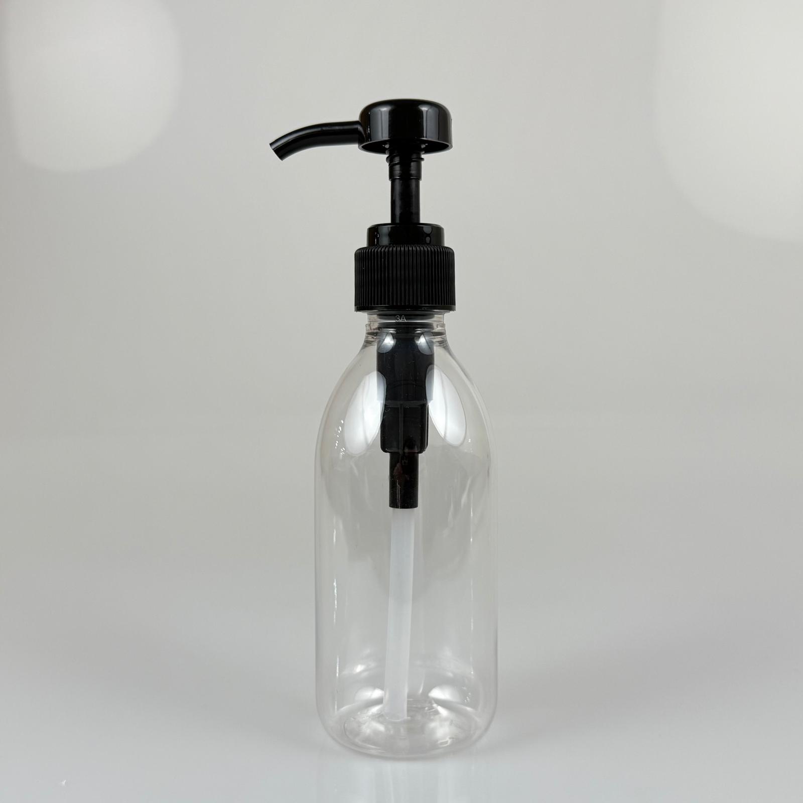 250 CC PET ŞEFFAF OVAL MODEL ŞİŞE - SİYAH DOZAJ POMPALI (HER BASMADA 4 CC SIVI ATAR) - 0,25 LT POMPALI ŞİŞE - ŞURUP, ŞAMPUAN, KREM GİBİ YOĞUN KIVAMLI SIVILARDA KULLANILIR - 400 adet