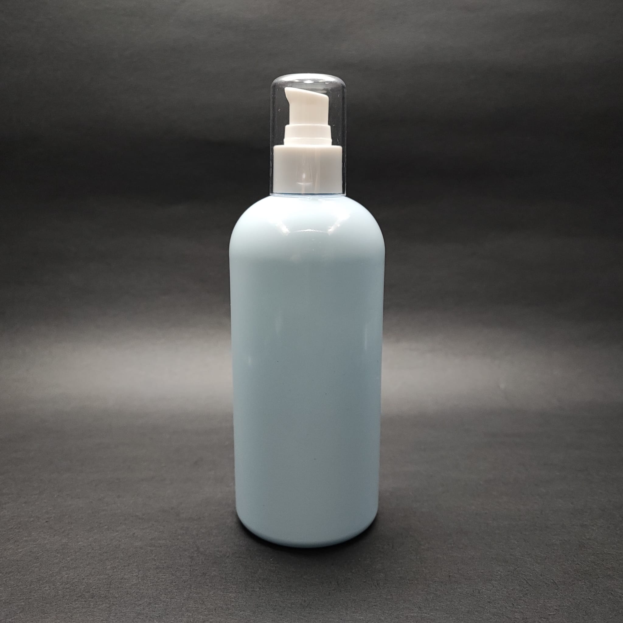 400 CC OVAL BOYUNLU SİLİNDİR PET ŞİŞE (30 GR) - BEYAZ LOSYON POMPALI - 400 ML PLASTİK ŞİŞE - BEBEK MAVİSİ - 210 adet
