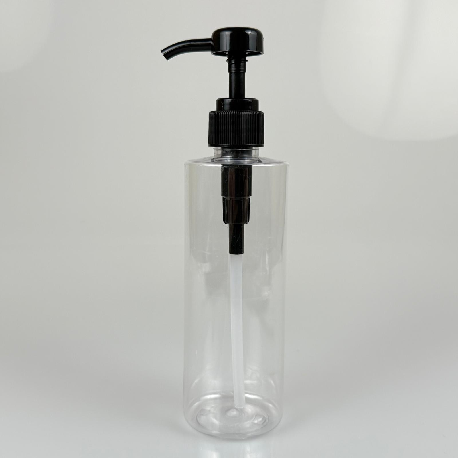 400 CC PET ŞEFFAF SİLİNDİR MODEL ŞİŞE - SİYAH DOZAJ POMPALI (HER BASMADA 4 CC SIVI ATAR) - 400 ML POMPALI ŞİŞE - ŞURUP, ŞAMPUAN, KREM GİBİ YOĞUN KIVAMLI SIVILARDA KULLANILIR - 264 adet