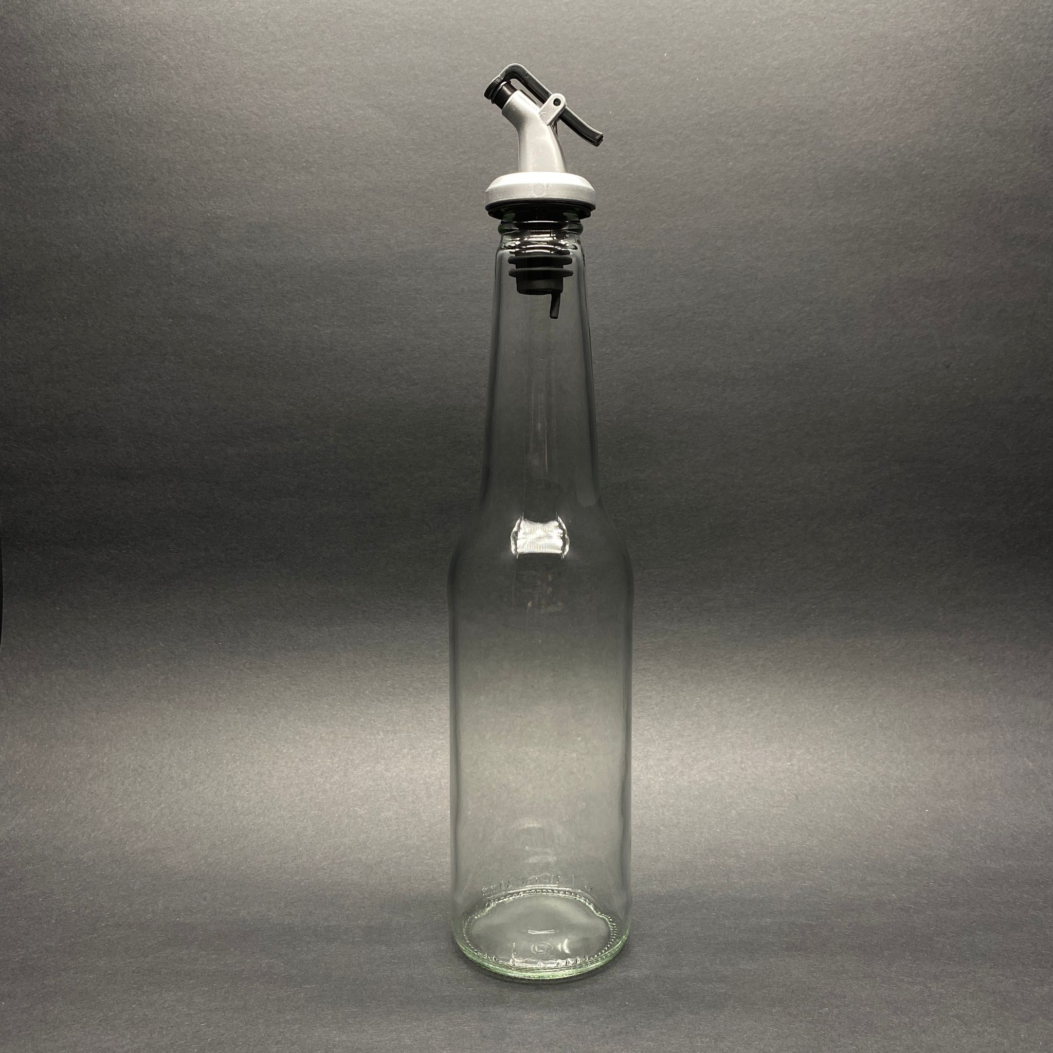ALYA UZUN MODEL CAM YAĞDANLIK ŞİŞE + SİYAH KAPAKLI GRİ YAĞ TIPASI - 410 ML - 96 adet