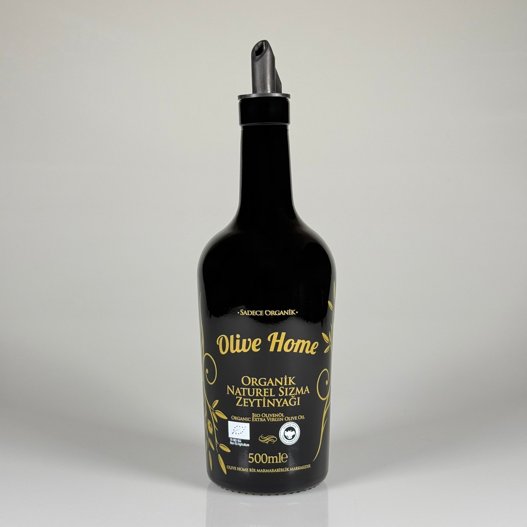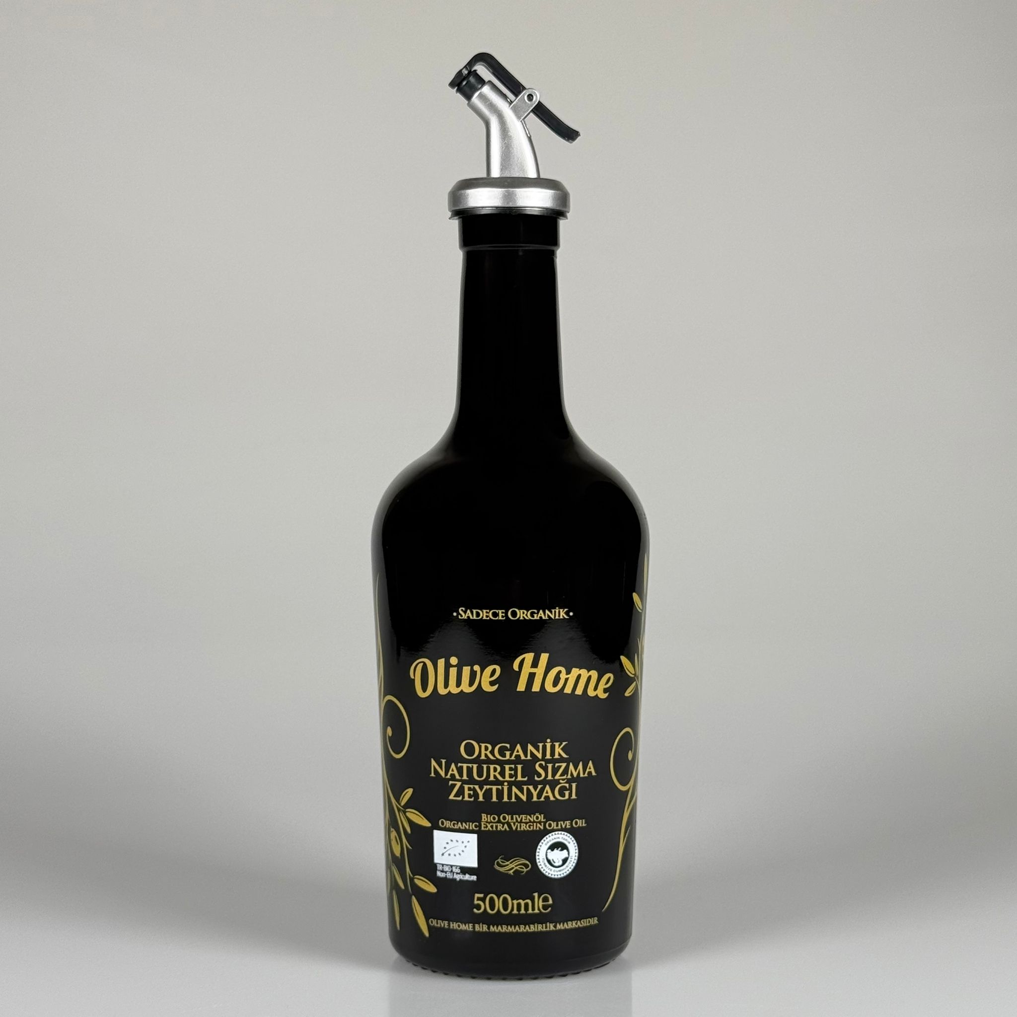 500 CC SİYAH OLİVE YAZI CAM ZEYTİNYAĞ ŞİŞESİ - GRİ YAĞDANLIK TIPALI - 500 ML YAĞDANLIK BASKILI CAM ŞİŞE - 24 adet