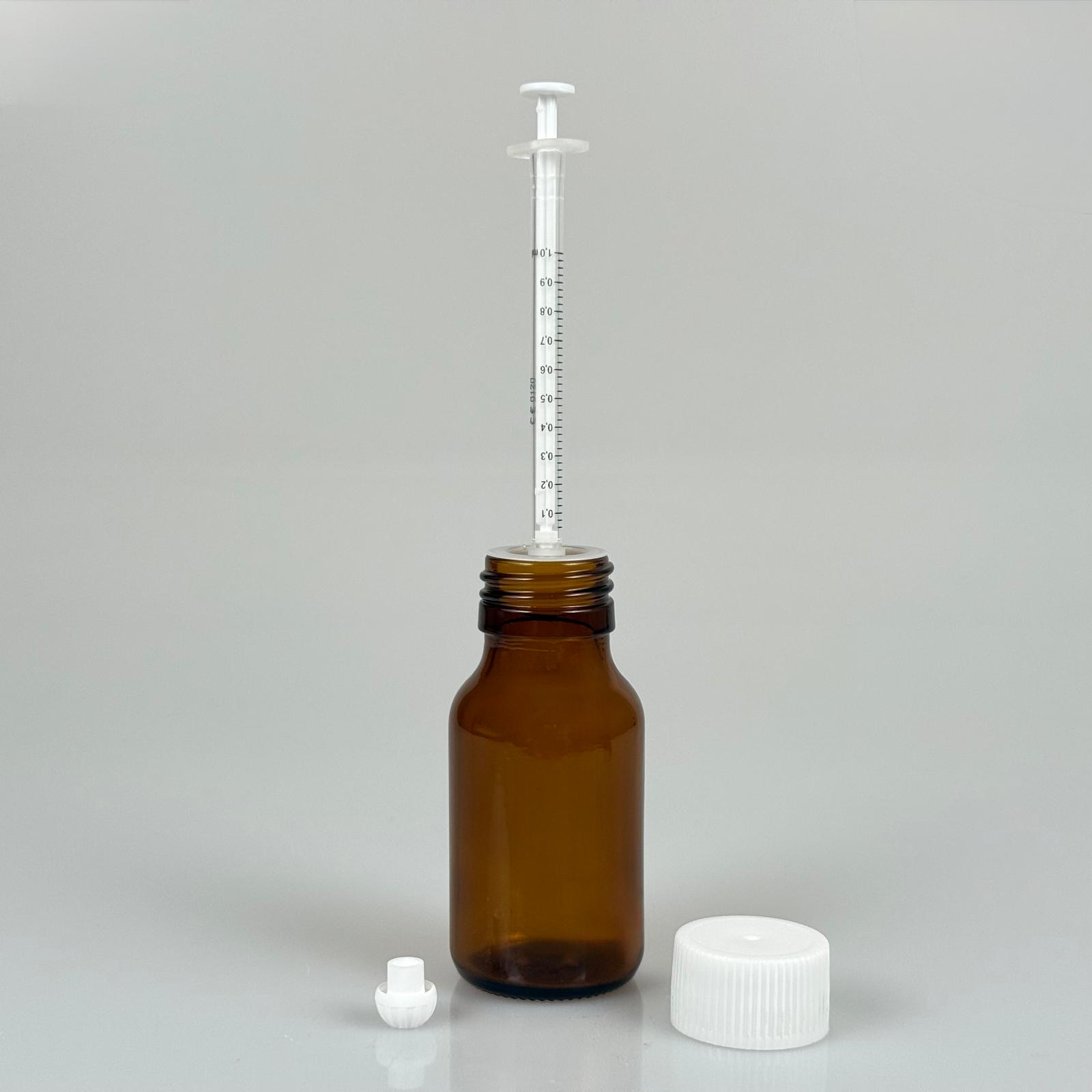 100 ML YASSI CAM ECZA ŞİŞESİ + 1 ML DOZAJ PİPETİ + DOZAJ TIPASI + CONTALI PLASTİK KAPAK TAKIM - 91 adet